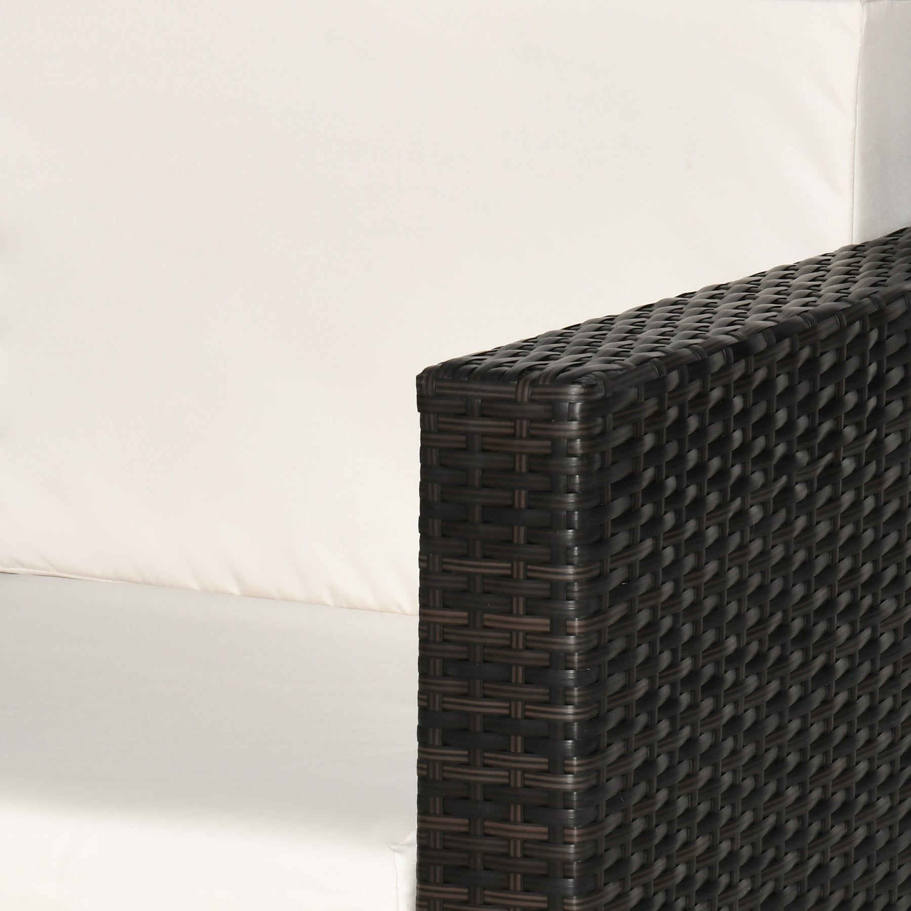 The comfy garden armchair from . Made of a steel frame to prevent rust and damage outdoors, wrapped in rattan for easy cleaning and a mainstay in your garden furniture. Come with 10cm thick padded and plush cushions, as well as being water-resistant and having washable covers, with a high back and armrests for plenty of support—a great way to sit back and relax in the sun.