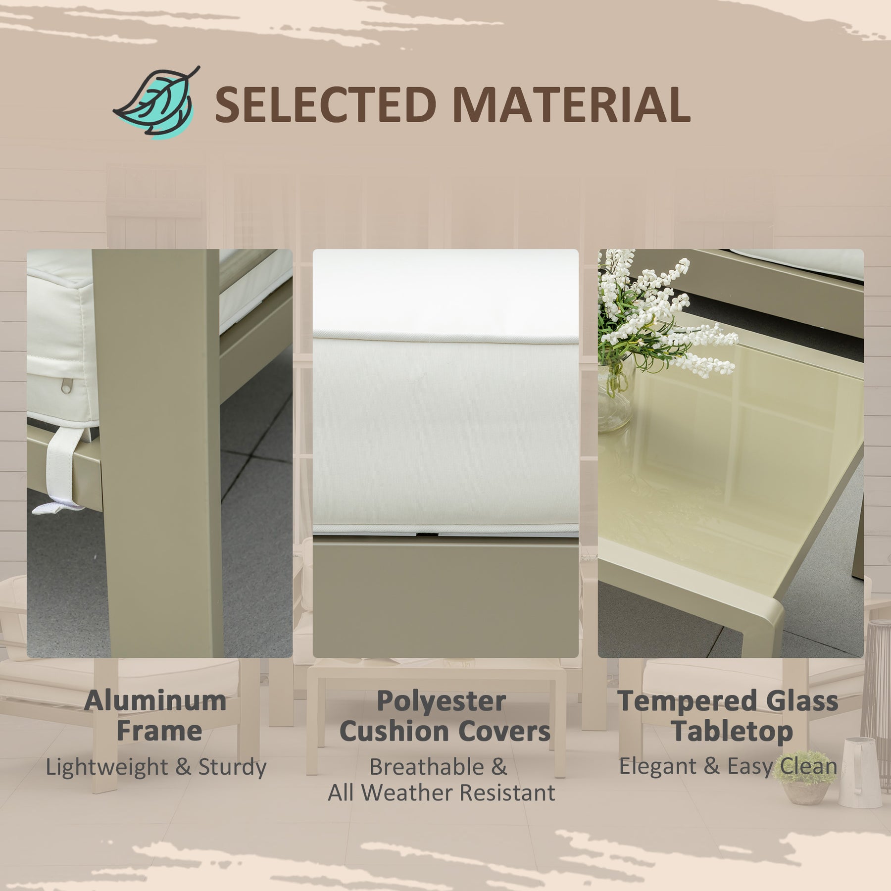 - Aluminium frame provides strength and ensures durability for each piece. Resistant to rusting and peeling