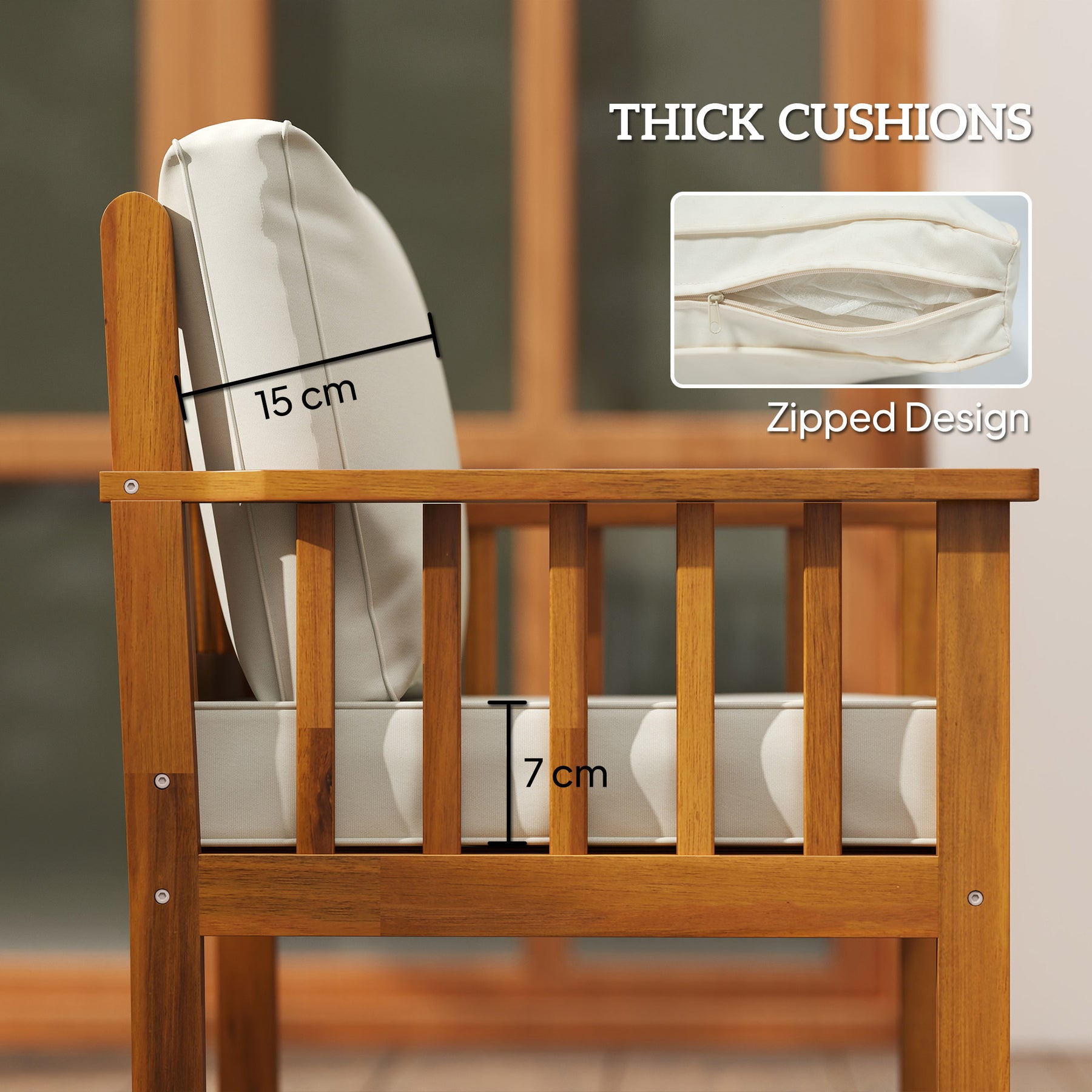 Natural beauty for all outdoor spaces, with this wooden garden sofa set. With two chairs, a loveseat and square coffee table, there's plenty of room for you and family to sit together. Made from acacia wood, each piece of the garden furniture set is naturally beautiful and tough - suitable for outdoor use, all year round. Complete with thick seat and back cushions for comfort.