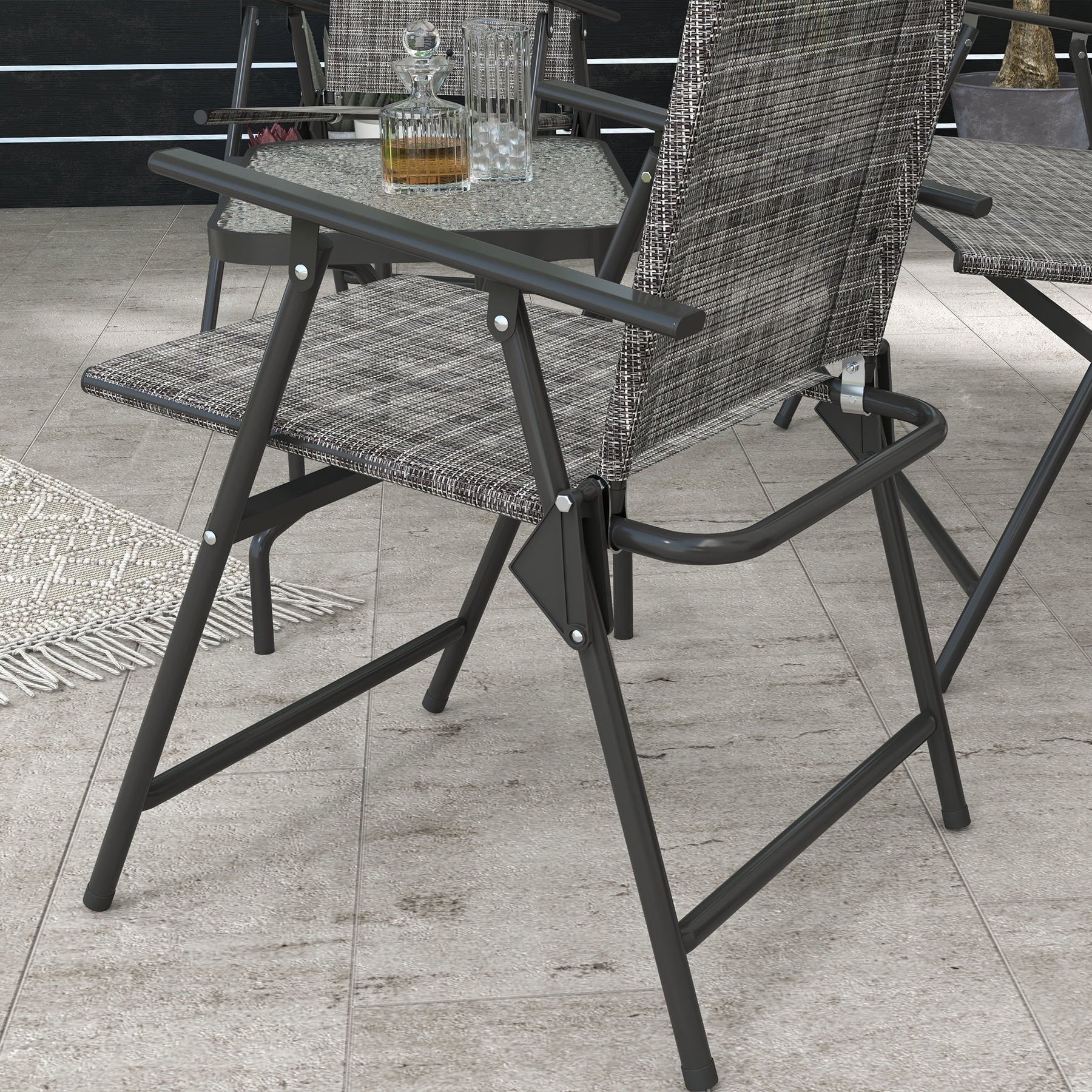 For rest and relaxation outdoors, go for this four-piece sofa set. The steel frames ensure a strong core, with breathable mesh fabric panels to hold you comfortably. The tempered glass tabletop ensures a safe holding place, plus a sleek look. Comes with two chairs, a loveseat and small coffee table.