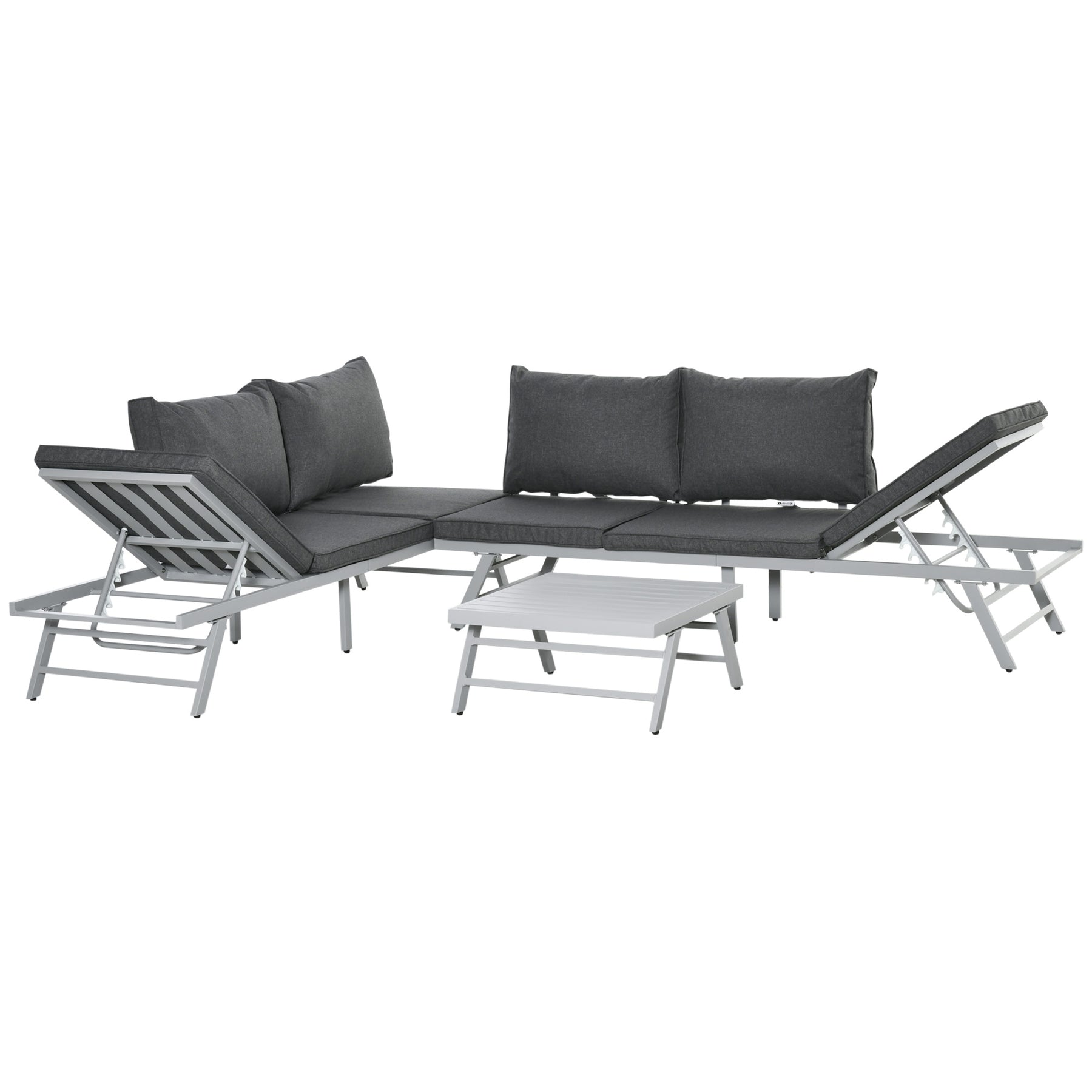 MCL 3 Pieces Garden Furniture Sets, 6 Seater Corner Sofa Set with Adjustable Backrest Chase Lounge with Slatted Metal Top Table, Padded Cushion, Grey