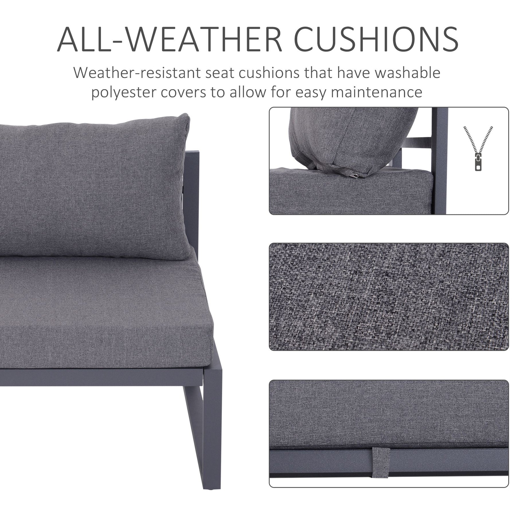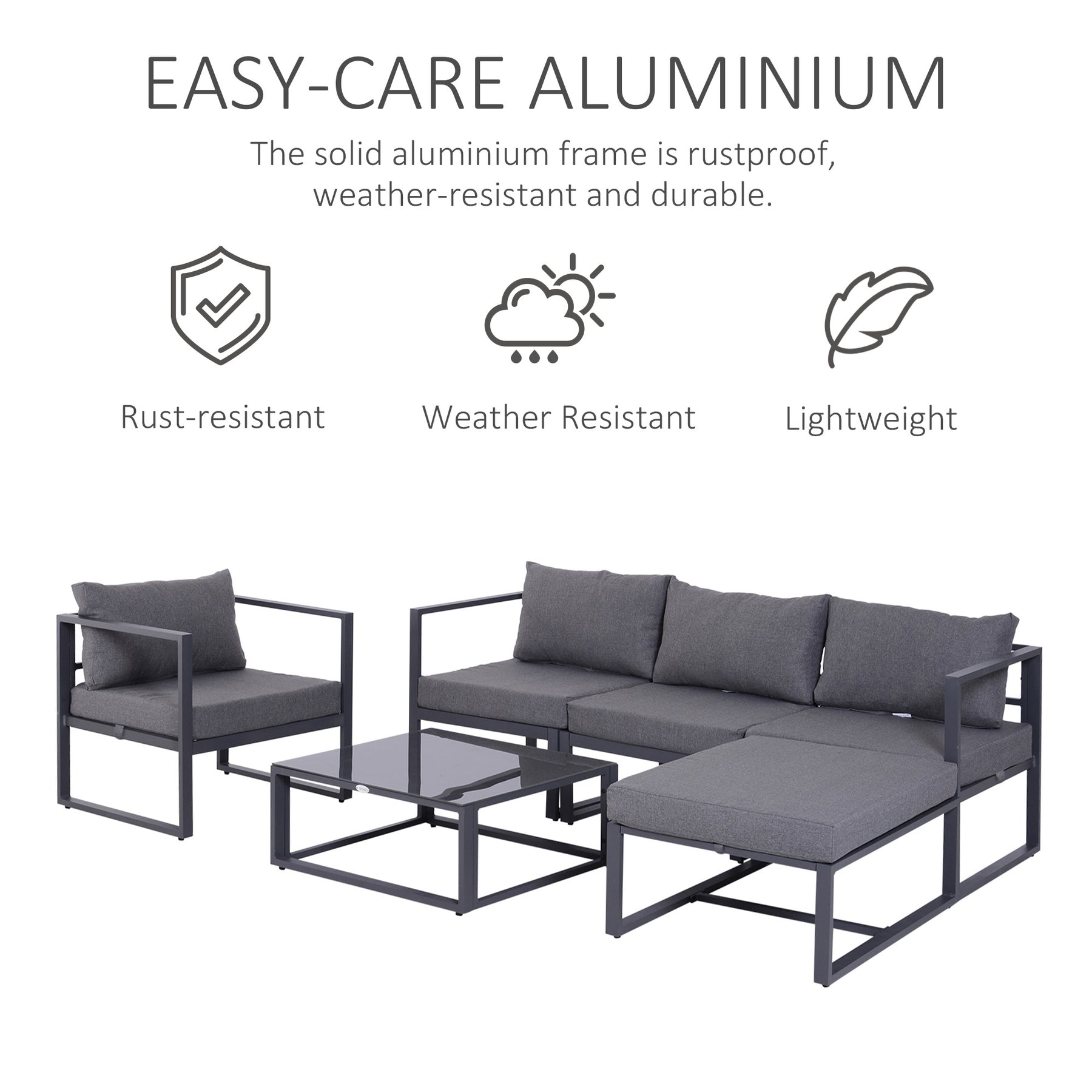 MCL 6 PCs Outdoor Indoor Sectional Sofa Set Thick Padded Cushions Aluminium Frame 5 Seaters 1 Coffee Table Footrest Grey