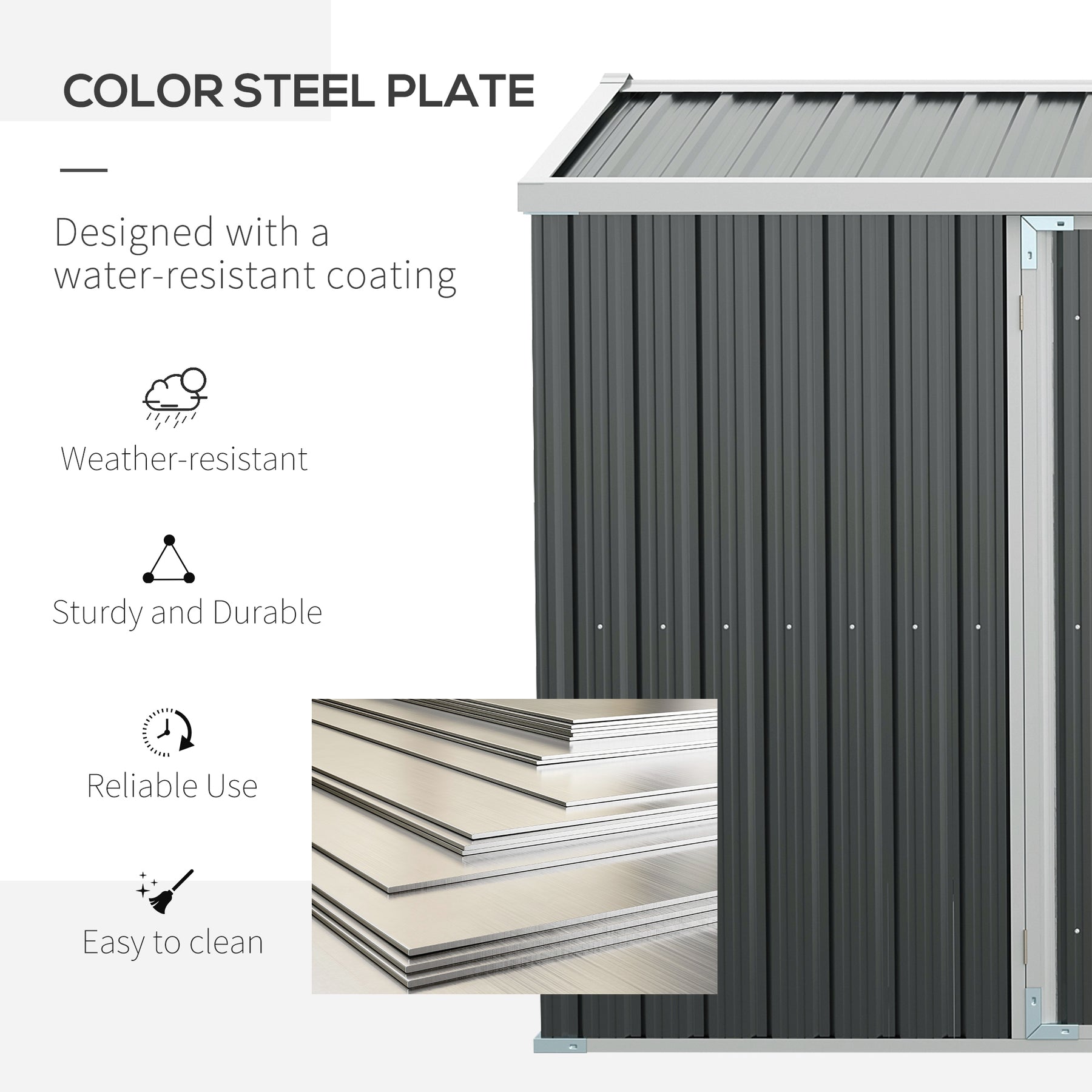 Easily add storage space and value to your property with an outdoor garden shed from MCL. The steel tool storage shed has distinct advantages over traditional wooden models that make it a much more attractive choice for purchase. Large space for keeping tools, equipment, bikes and bins. Besides, the durable and weather-resistant galvanized steel ensure reliable daily use. Sloped roof is easy for rain draining. This backyard storage shed can be your perfect choice for patio and lawn.