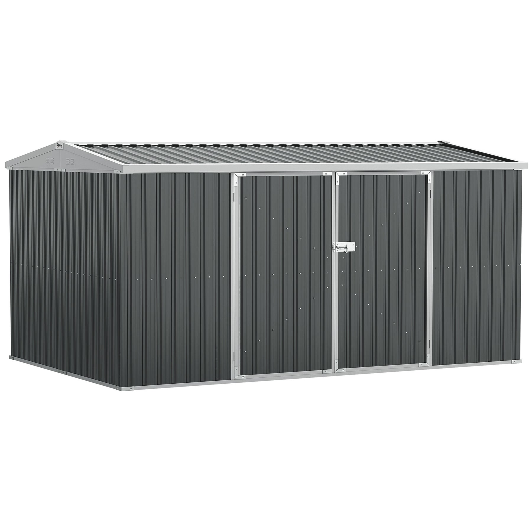 MCL 14 x 8ft Outdoor Garden Metal Storage Shed with Lockable Door, Tool Storage Box for Garden, Patio and Lawn, Grey