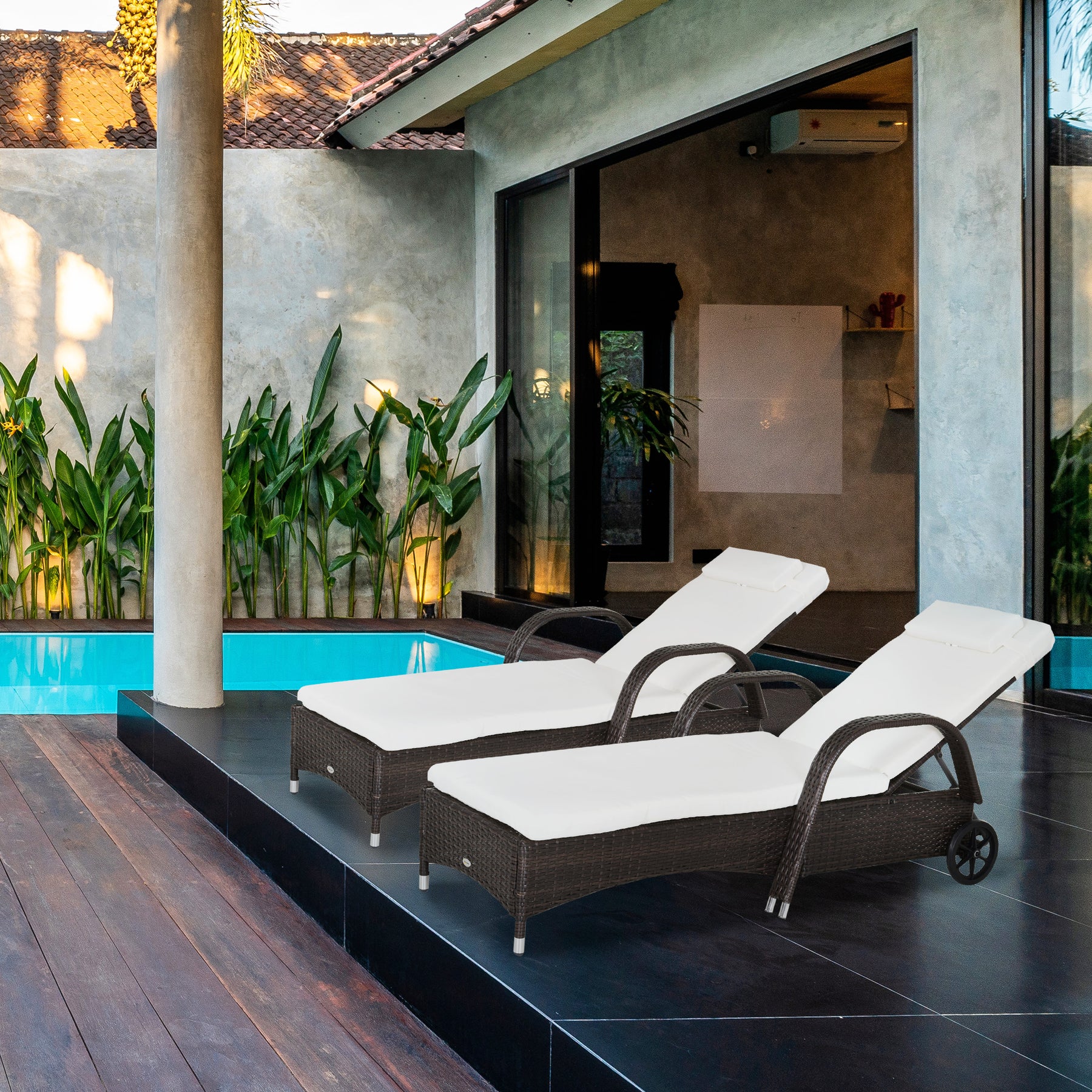 MCL 2PC Rattan Sun Lounger Recliner Bed Reclining Chair Patio Garden Outdoor Wicker Weave Adjustable Headrest with Fire Retardant Cushion – Brown