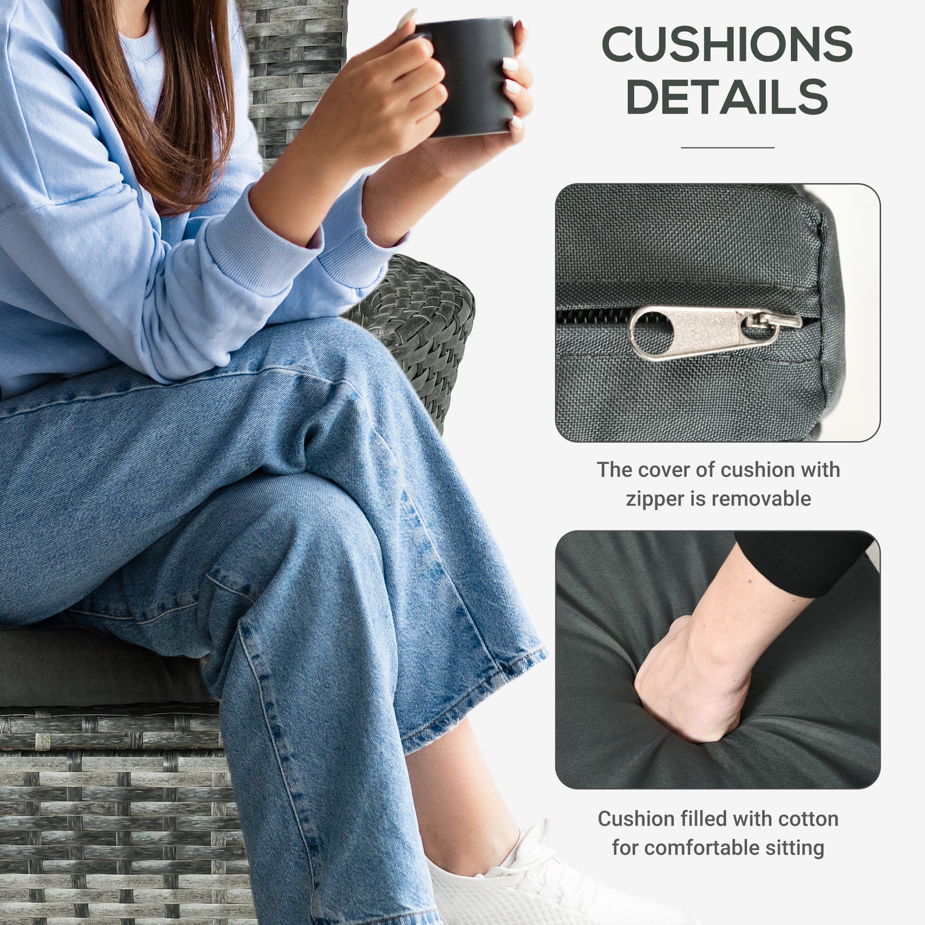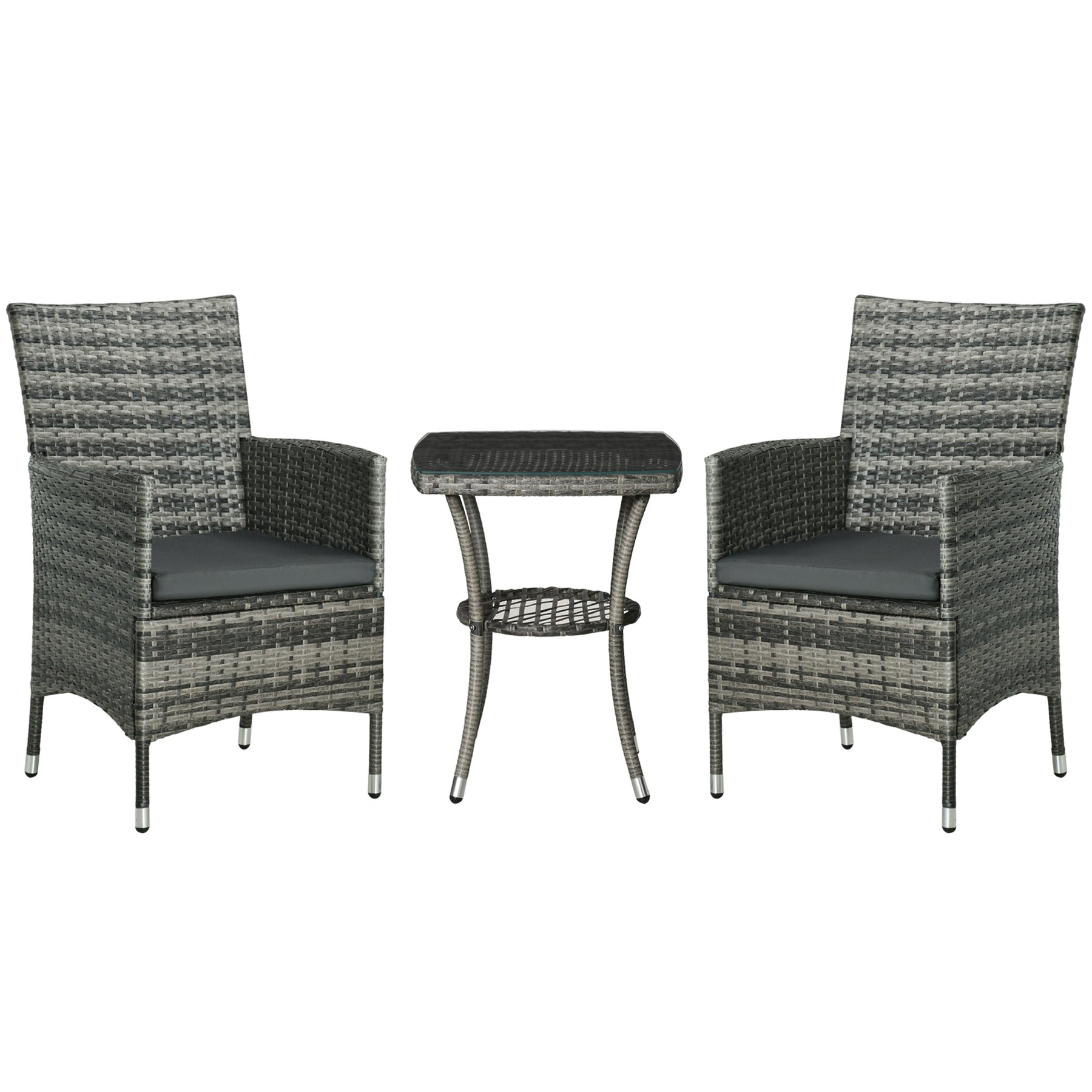 MCL 3 Pieces Rattan Bistro Set, Wicker Garden Furniture Set with 2-Tier Coffee Table and Chairs, Washable Cushions, for Outdoor Patio Balcony, Mixed Grey