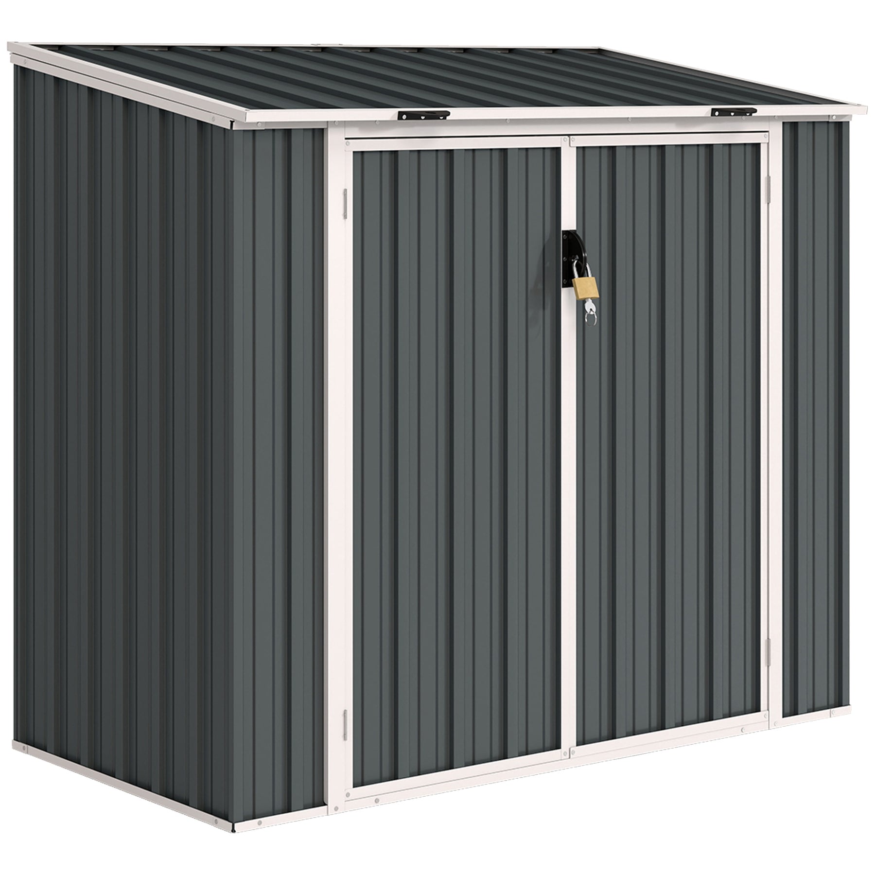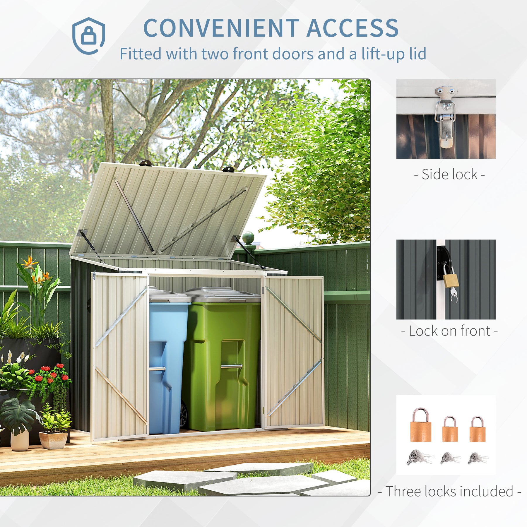 MCL 5ft x 3ft Garden 2-Bin Steel Storage Shed, Double Rubbish Storage Shed, Hide Dustbin w/ Locking Doors and Openable Lid