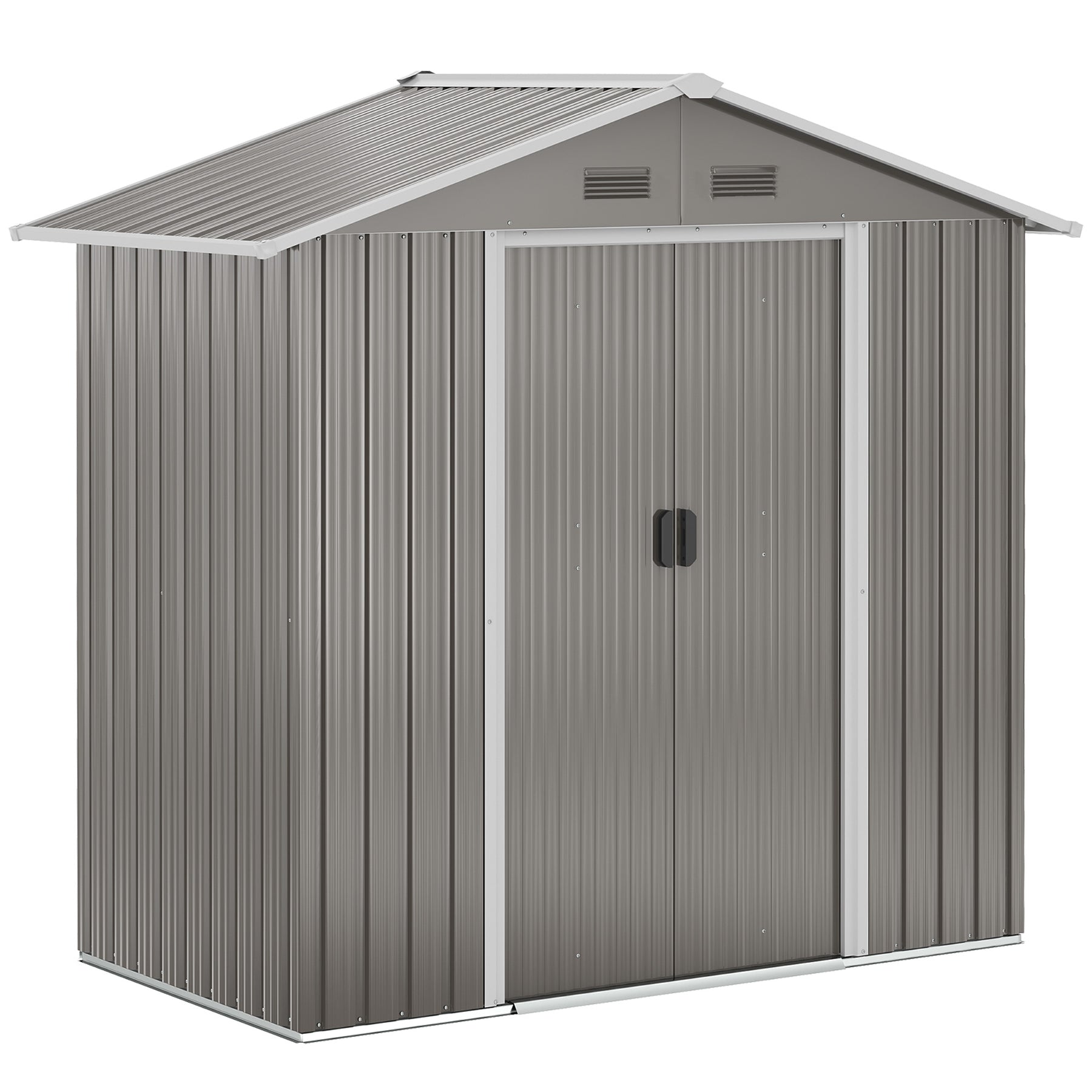 MCL 6.5ft x 3.5ft Metal Garden Storage Shed for Outdoor Tool Storage with Double Sliding Doors and 4 Vents, Grey