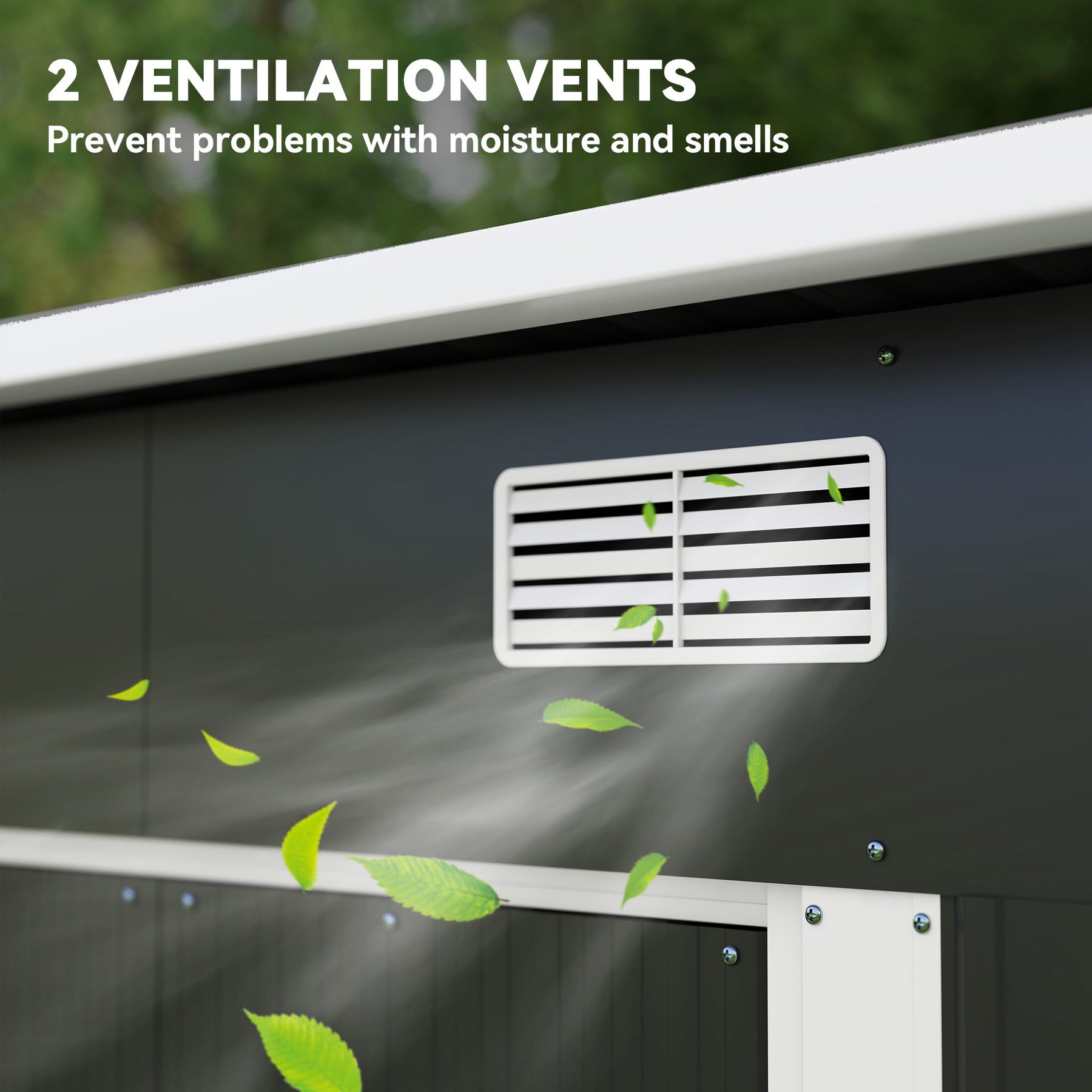 MCL 7 x 4ft Outdoor Storage Shed with Foundation Kit, Lean to Metal Garden Shed for Log, Rubbish Bin, Tool, Lawnmower, Bike, Patio and Lawn Use, Black