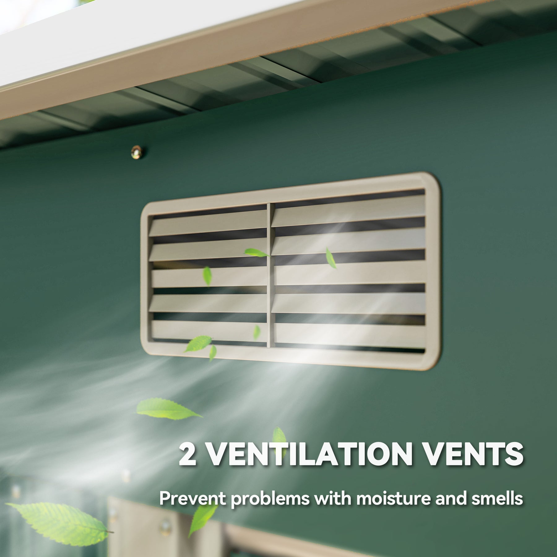 MCL 7 x 4ft Outdoor Storage Shed with Foundation Kit, Lean to Metal Garden Shed for Log, Rubbish Bin, Tool, Lawnmower, Bike, Patio and Lawn Use, Green
