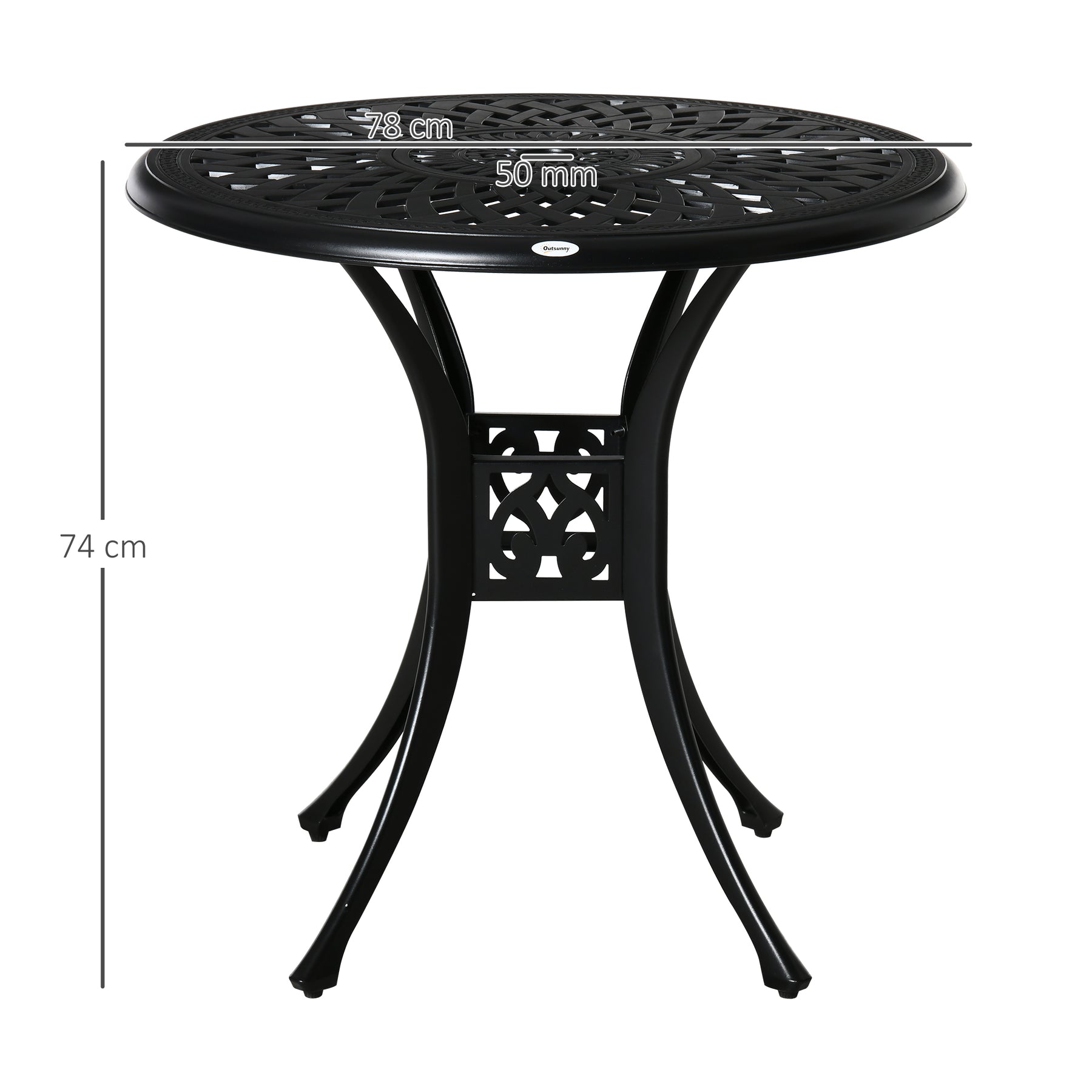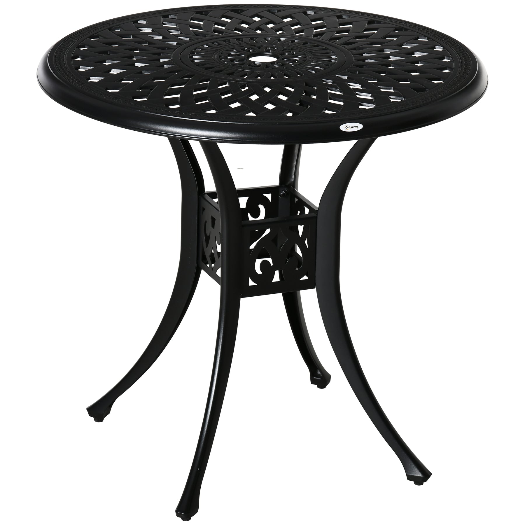 MCL 78 cm Round Garden Dining Table with Parasol Hole Antique Cast Aluminium Outdoor Table Only, Black