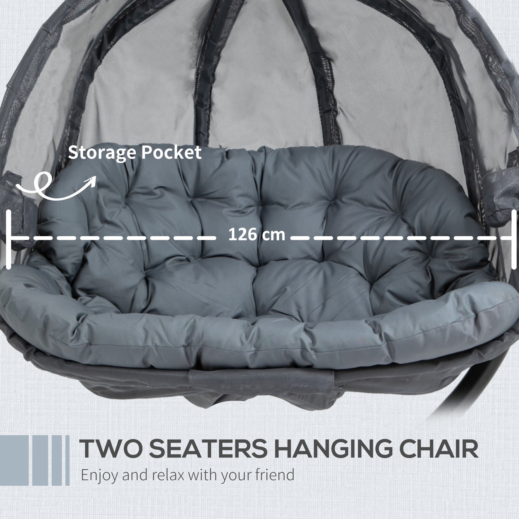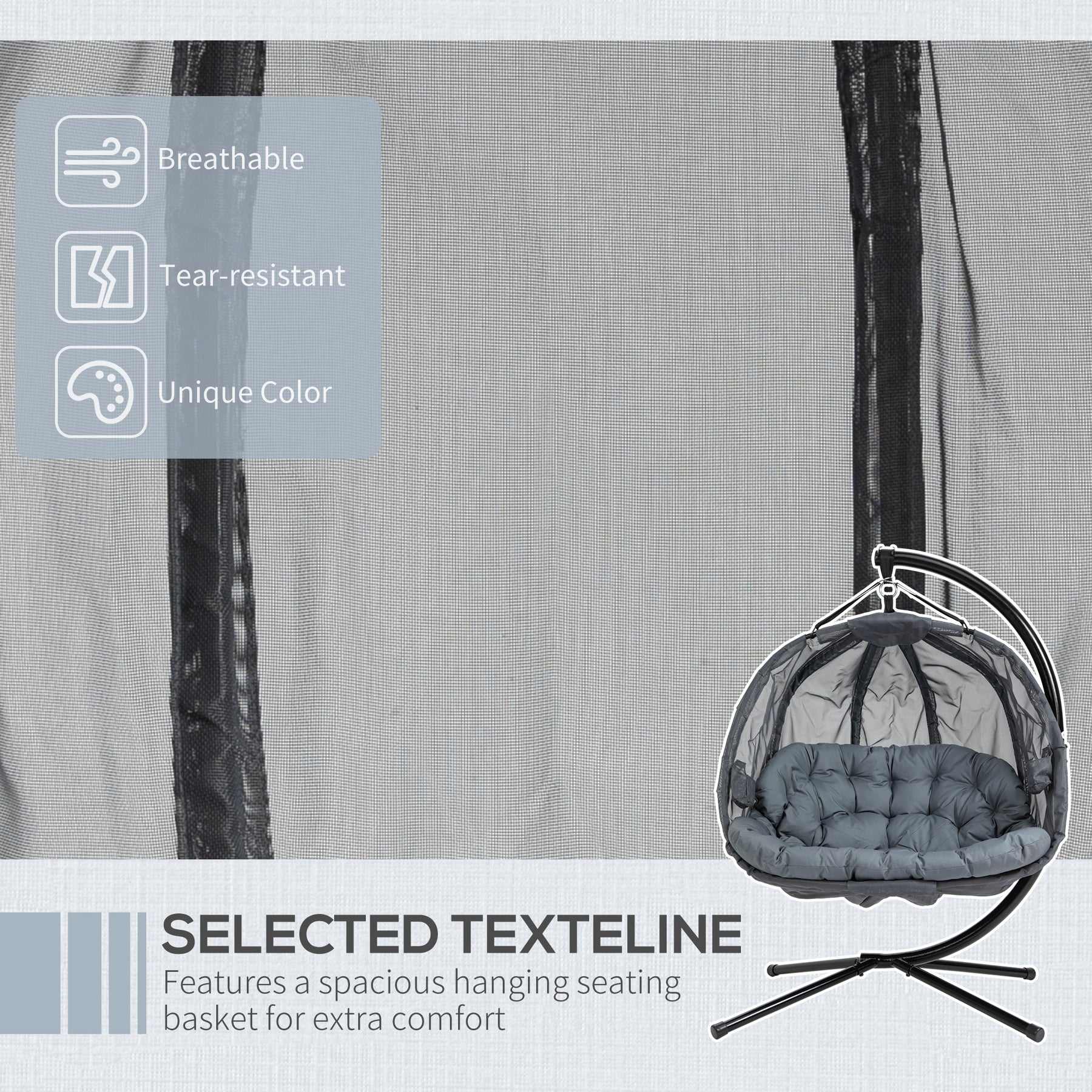 MCL Double Hanging Egg Chair 2 Seaters Texteline Swing Hammock Chair with Stand, Cushion and Folding Design, for Indoor and Outdoor, Grey