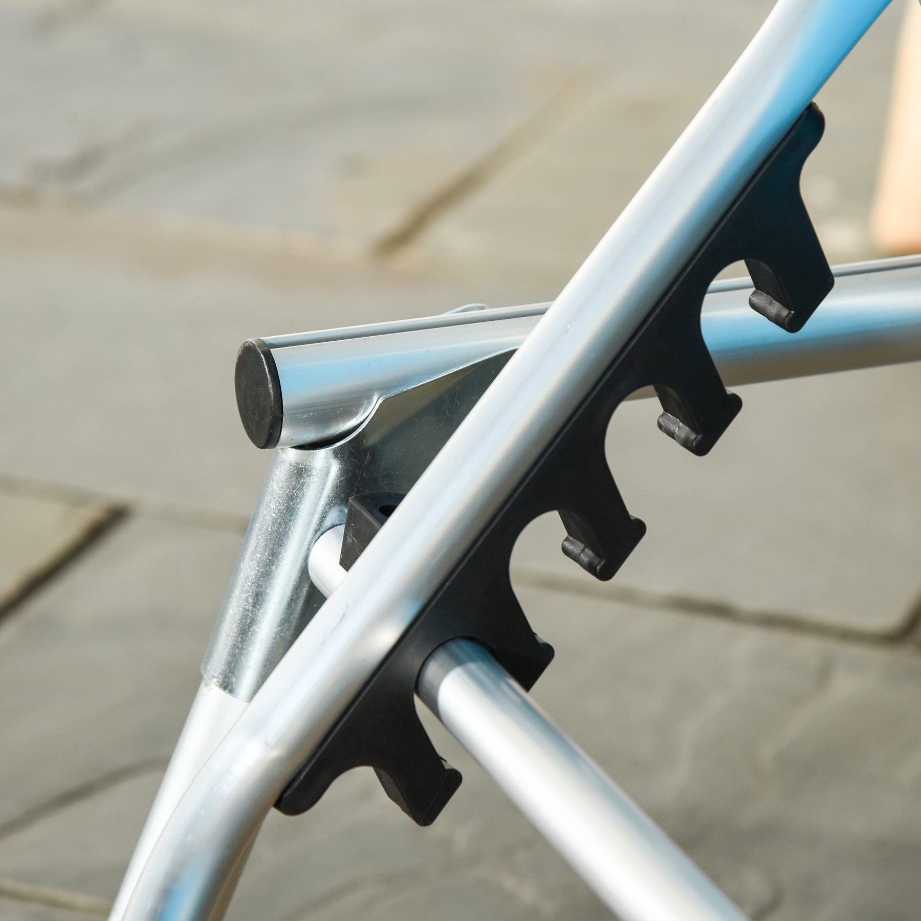 • Supportive aluminium frame, folds into a third to carry and store easily