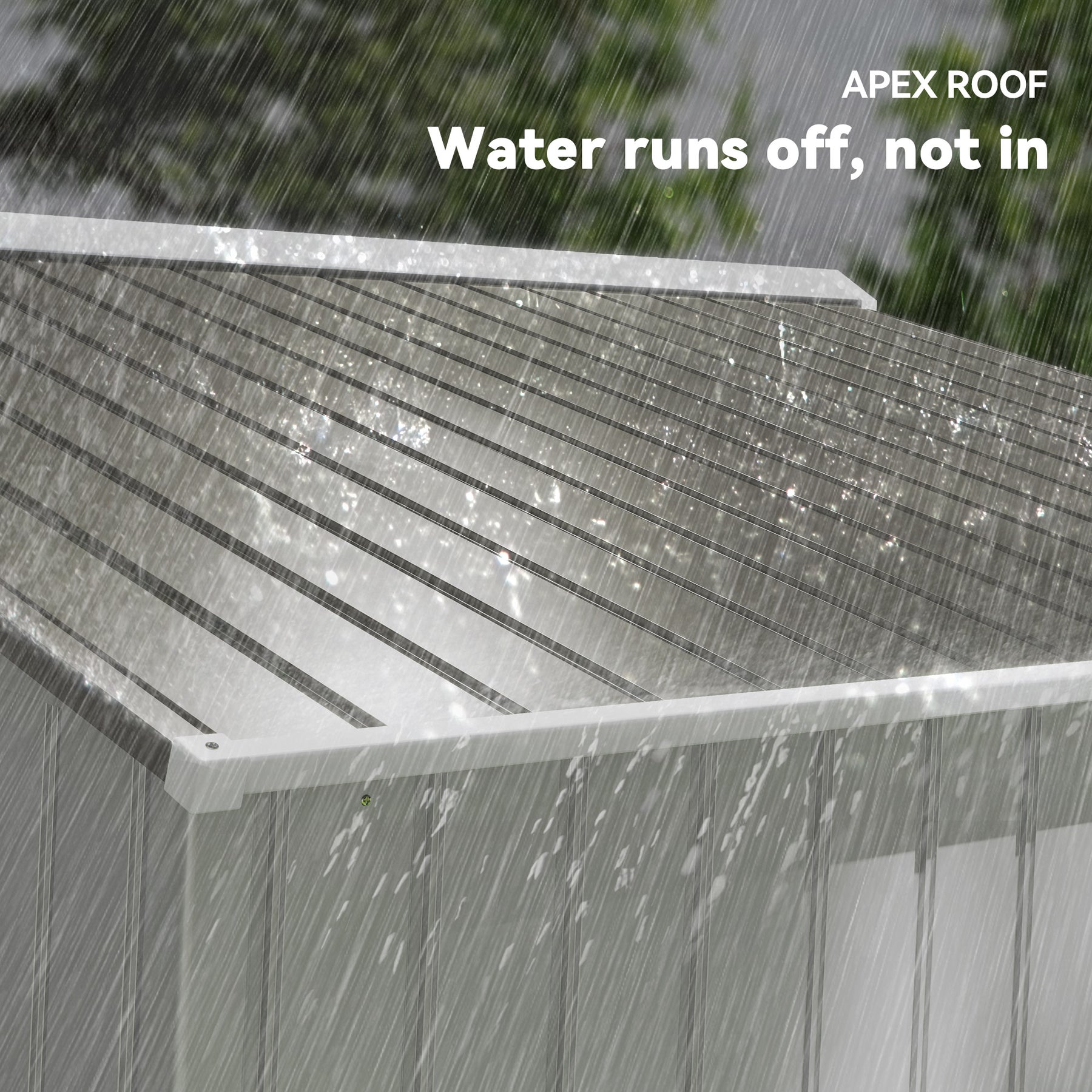• Sloped roof helps prevent water build-up: prevents surface damage and rusting