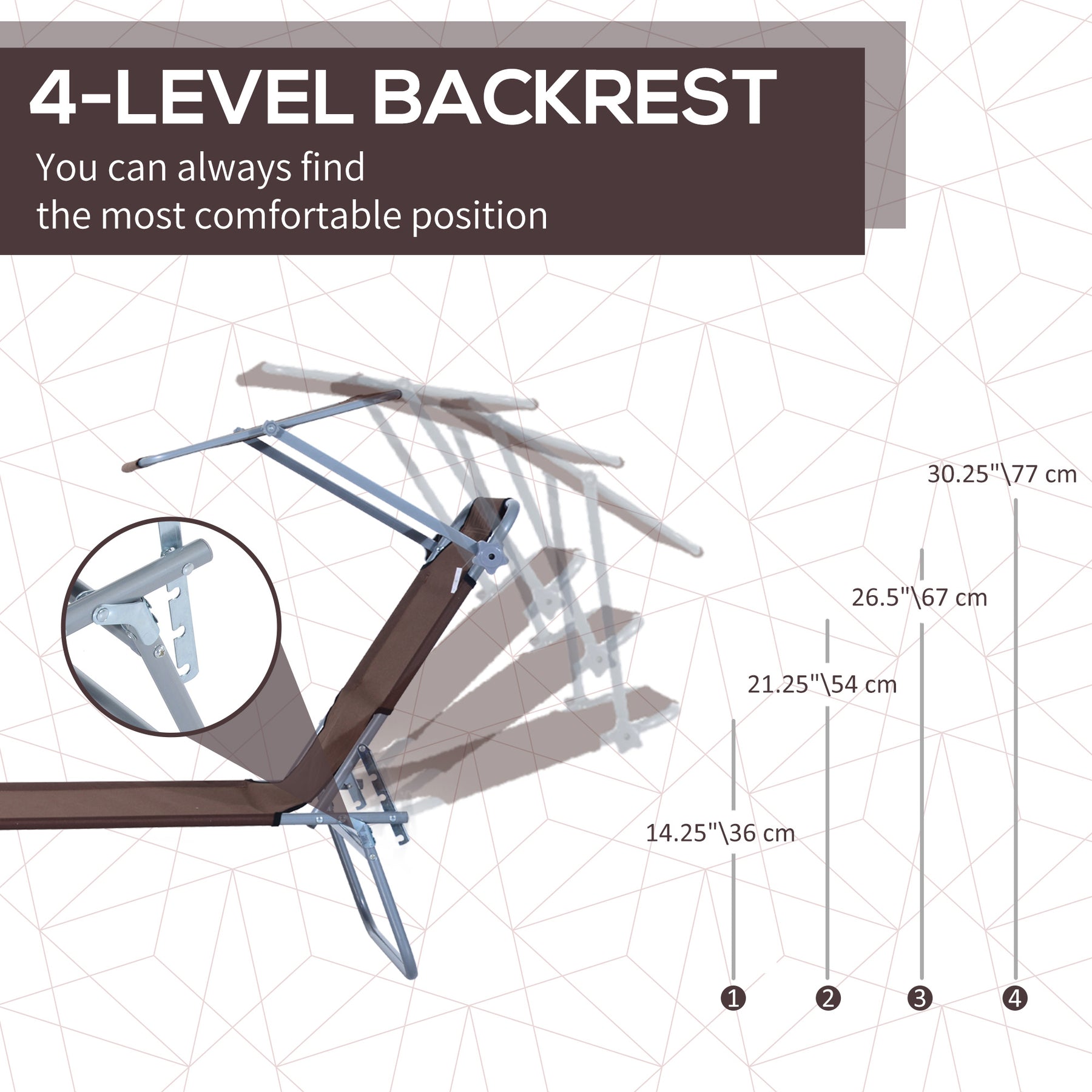 MCL Outdoor Foldable Sun Lounger, 4 Level Adjustable Backrest Reclining Sun Lounger Chair with Angle Adjust Sun Shade Awning for Beach, Garden, Patio, Brown