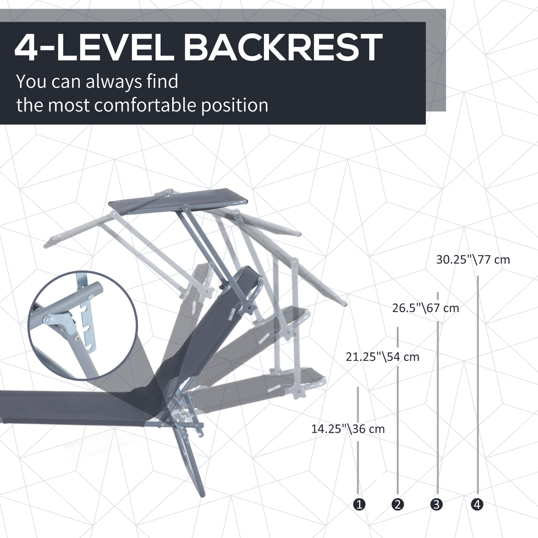 • Four-level adjustable back for personalized comfort