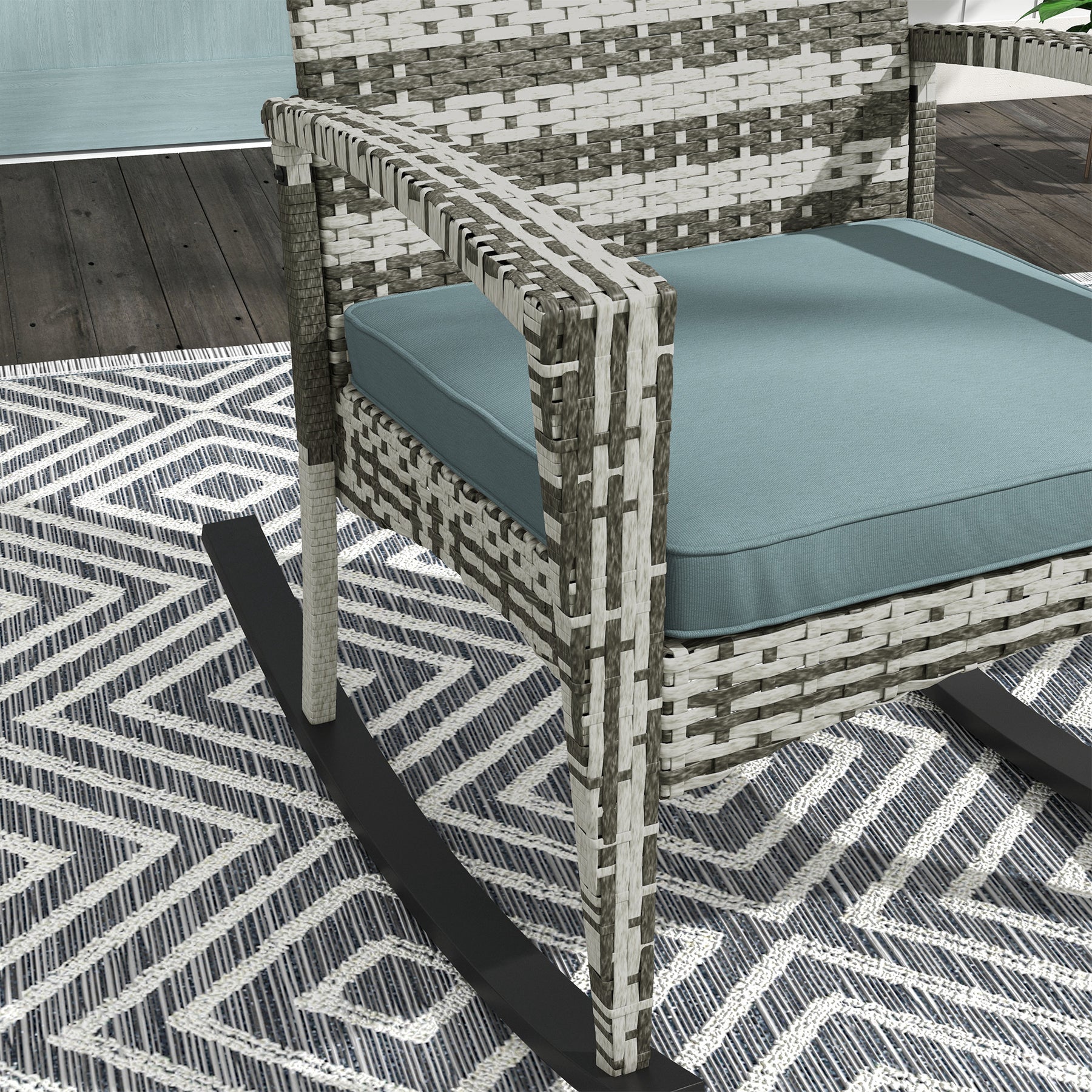 MCL PE Rattan Garden Rocking Chair, Outdoor Rocking with Cushion, 160 KG Capacity Wicker Garden Armchair Rocker with Metal Frame for Patio, Porch, Balcony, Light Grey