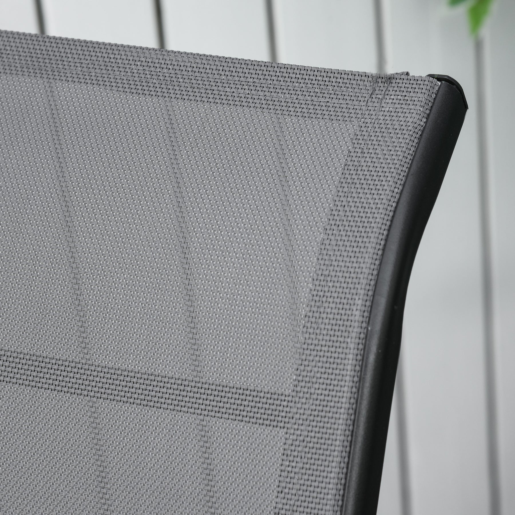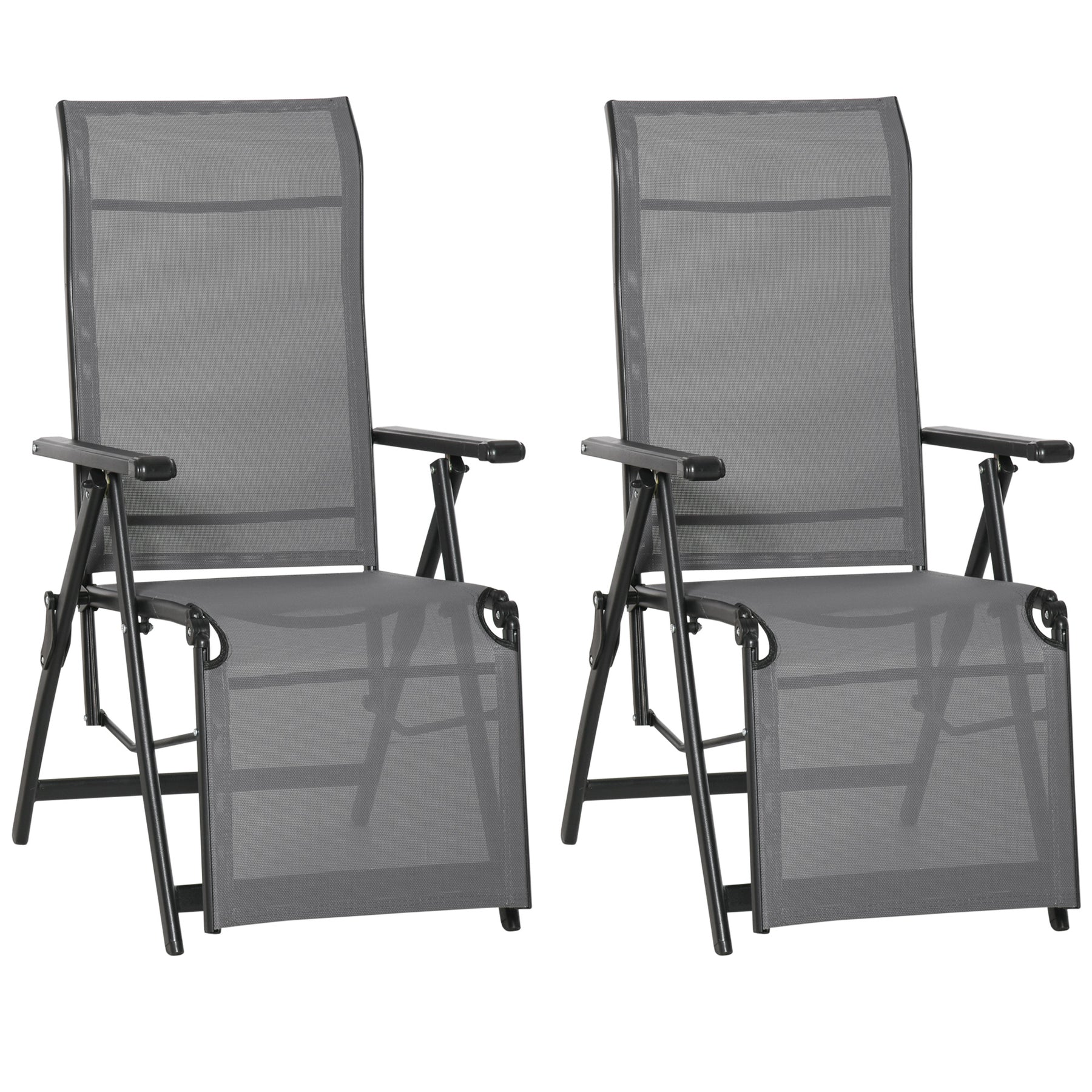 MCL Set of 2 Outdoor Sun Lounger 10-Position Adjustable Texteline Folding Reclining Chairs with Footrest for Patio Garden, Grey