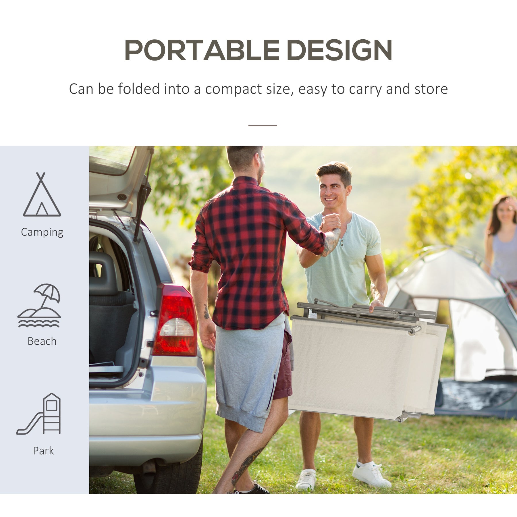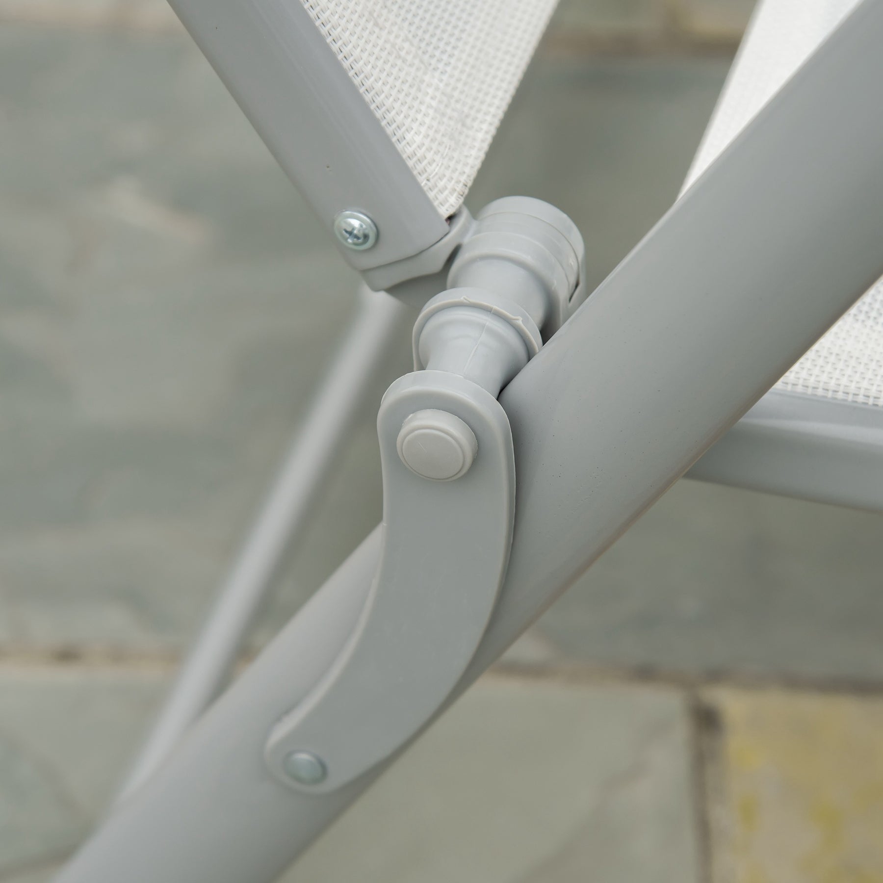 MCL Sun Lounger Steel Frame Outdoor Folding Chaise Texteline Lounge Chair Recliner with Headrest & 7 Levels Adjustable Backrest, Cream White