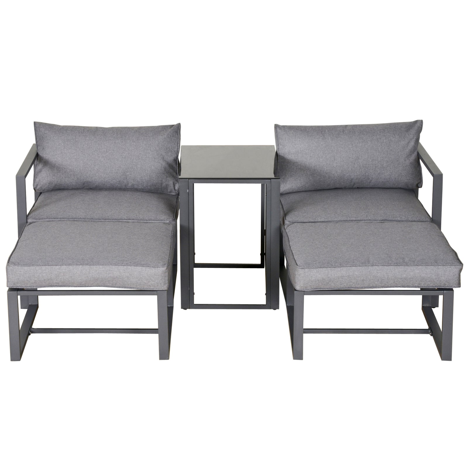MCL 5 Piece Garden Aluminium Conversation Sofa Set Patio Furniture Set Outdoor 2 Sofas 2 Footstools End Table with Cushions