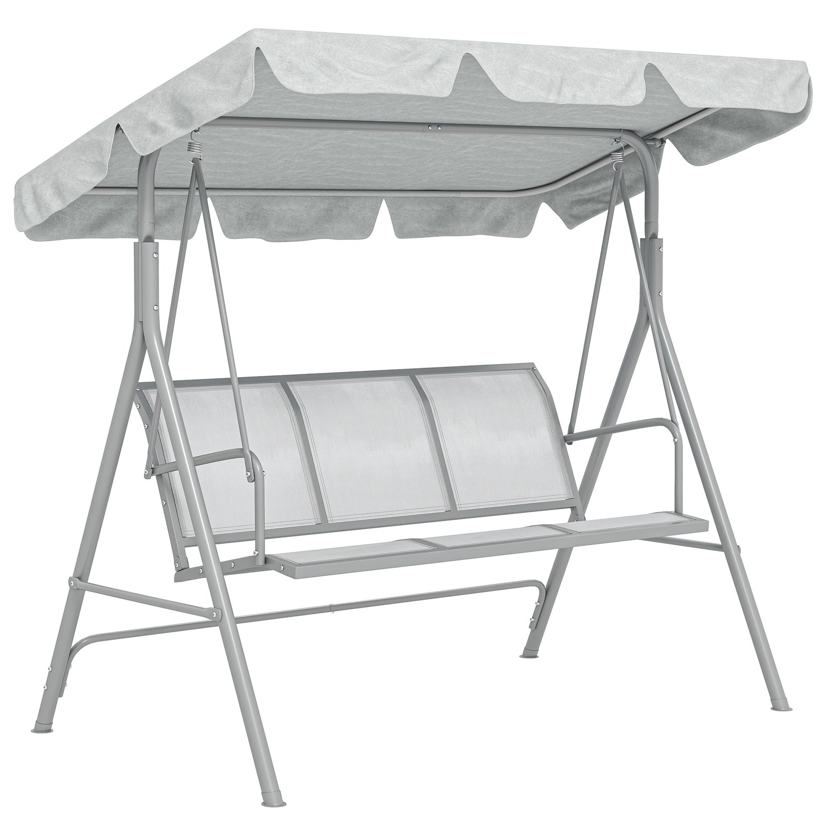 MCL Three Person Steel Outdoor Porch Swing Chair Bench w/ Canopy Cover Grey