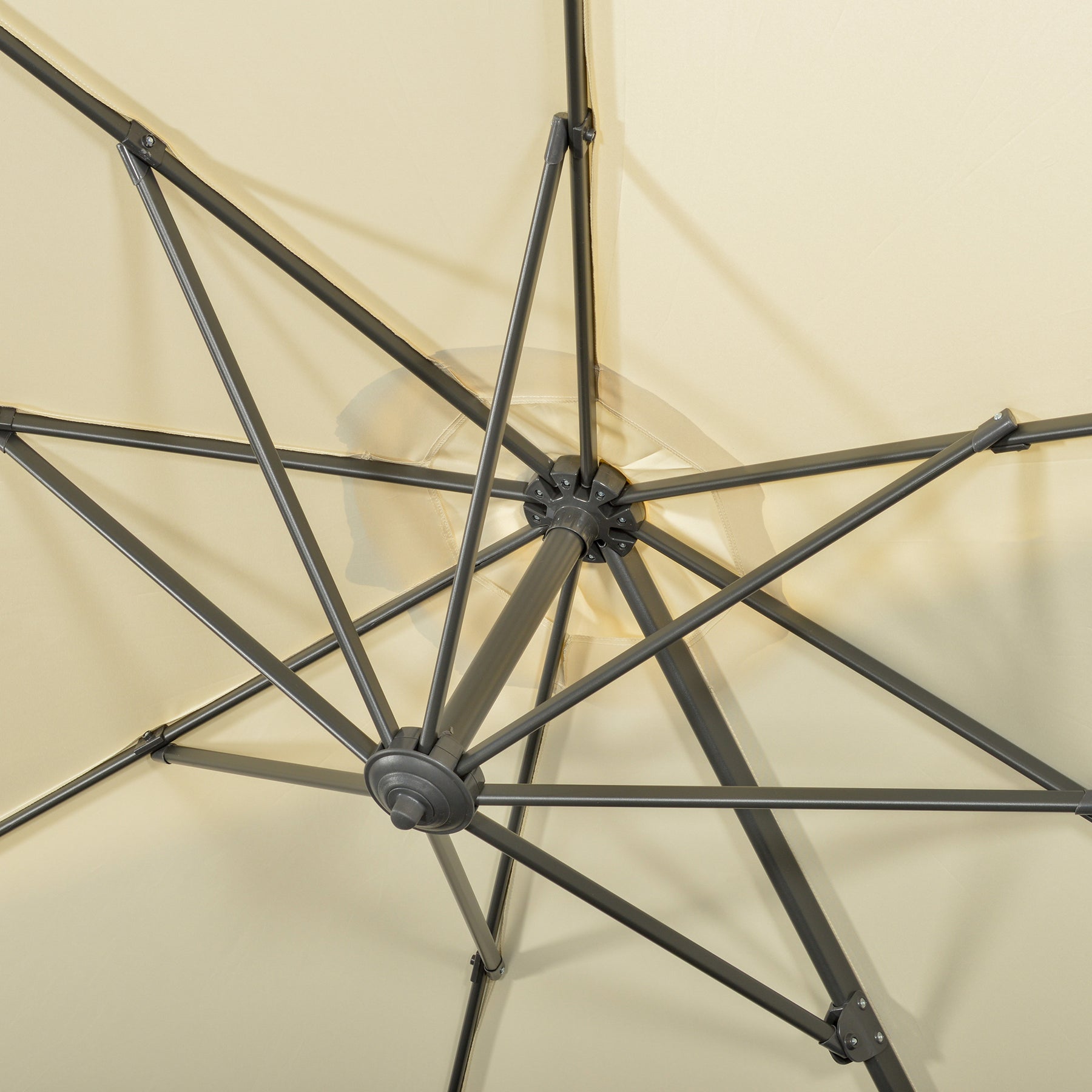 Keep yourself protected whilst enjoying the sun: go for this cantilever parasol. An aluminium frame means a strong core, with eight metal ribs connecting to the canopy for extra support. The canopy can be set to five different angles, it move a full 360° sideways - pick the shade position you want. Crank handle to open and close easily. Comes complete with a cross base (weights are required).