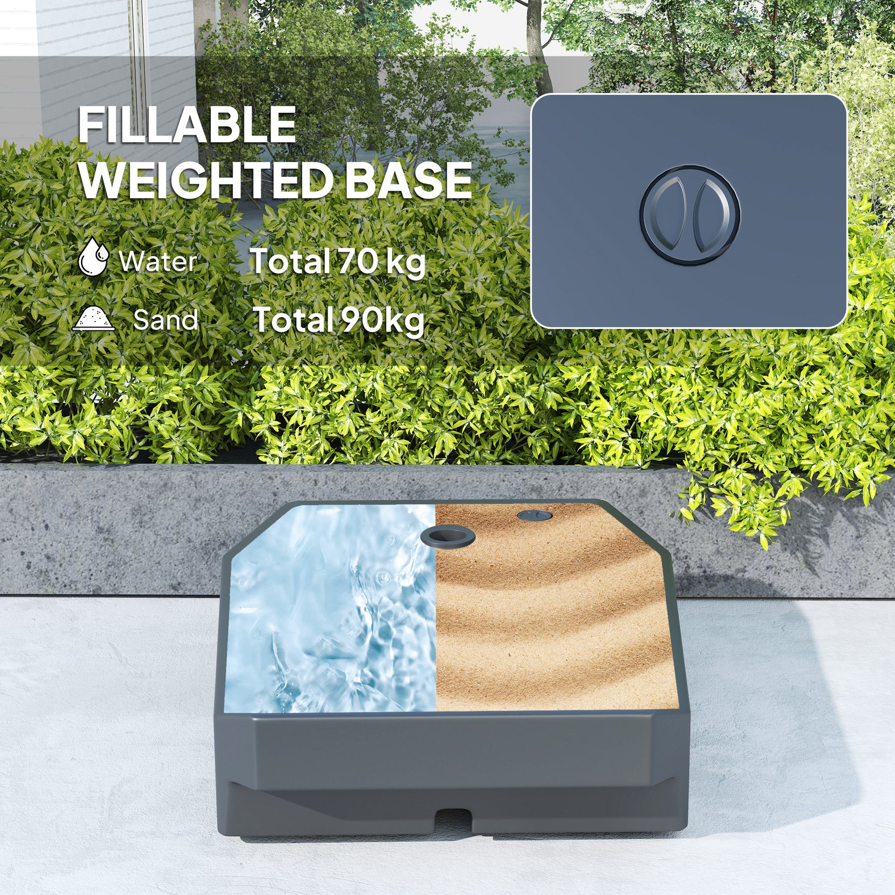 Relax in style with this garden parasol with base included, designed for both durability and comfort. A fillable base to provide exceptional stability, while 2 wind ropes keep it firmly in place in breezy conditions. The included protective cover ensures your umbrella stays clean and ready for use. With UPF50+ sun protection, enjoy full-day shade without worrying about harmful UV rays. Great for patios, gardens, or outdoor gatherings, this parasol can keep you cool and safe in the sun.