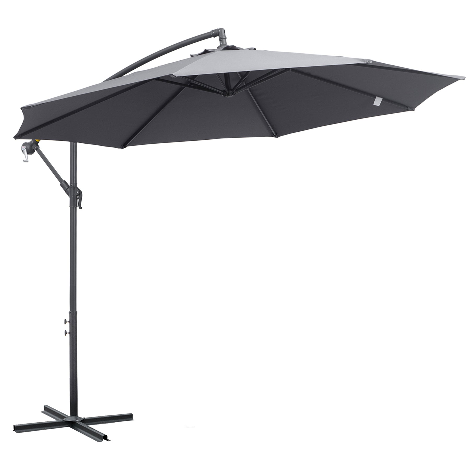 This stylish banana parasol from is a superior piece you'll love having outside. The modern overhanging design means you can keep shaded anywhere, with the hassle of a central pole getting in your way - bringing shade to large tables, sofas, bistro sets and more. The core structure is made from metal so it's tough and sturdy, connecting to the canopy with eight ribs for extra support. The canopy is thick to protect your from any sun and light rain and it features a top vent - letting air pass through with the risk of it overturning. Set comes with a cross base, but weights are required.