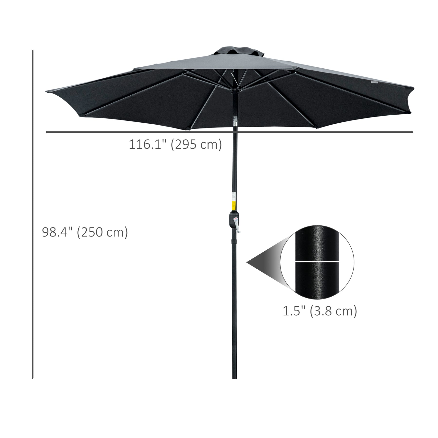 3(m) Tilting Parasol Garden Umbrellas, Outdoor Sun Shade with 8 Ribs, Tilt and Crank Handle for Balcony, Bench, Garden, Black