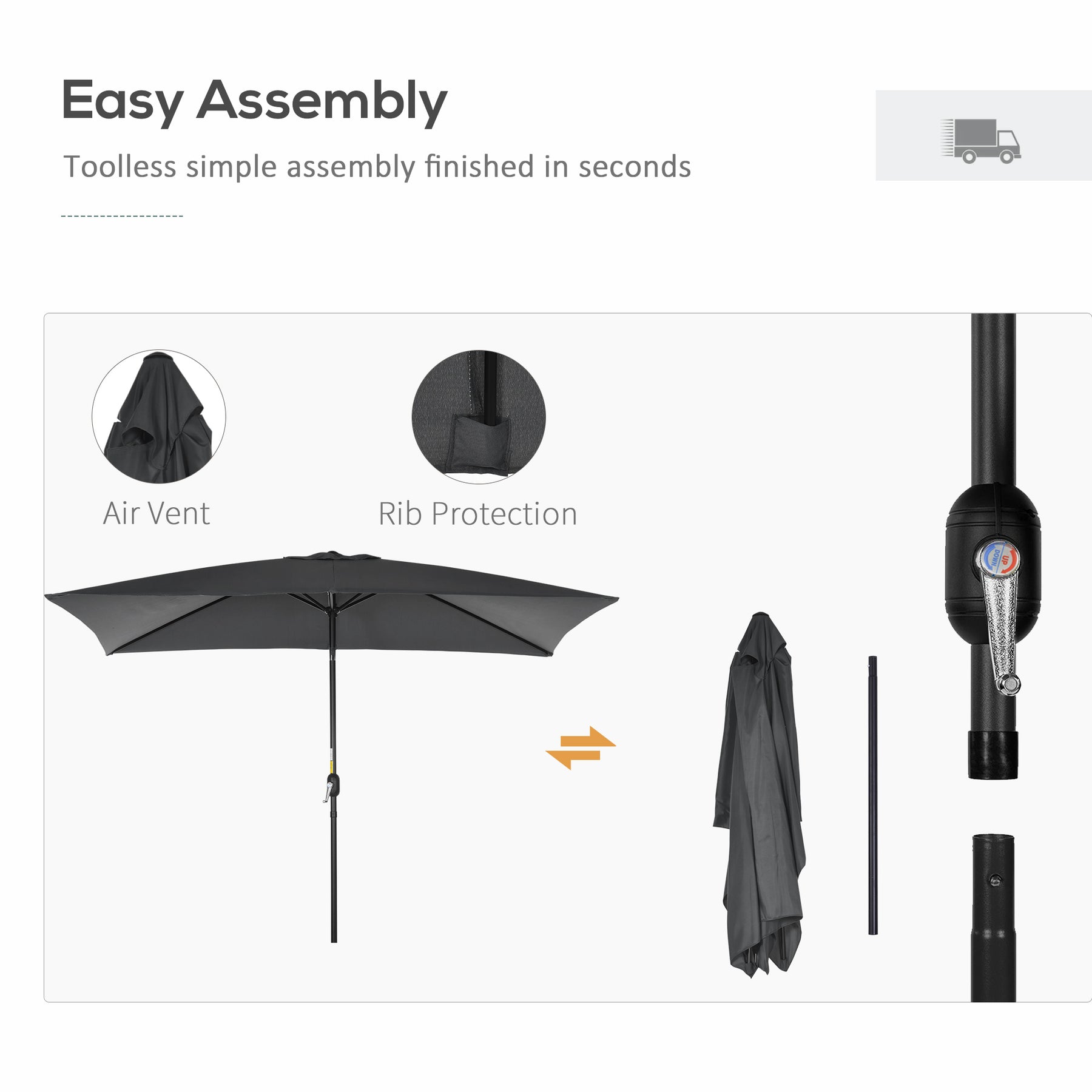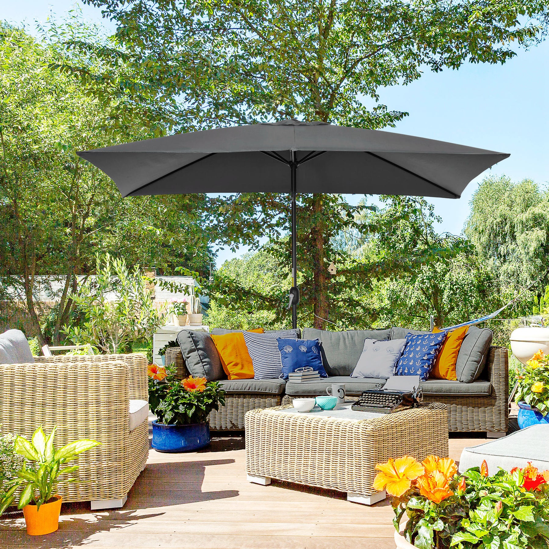 This tilting parasol is an excellent choice for staying cool when sunny outside. The polyester canopy filters most UV rays, keeping you protected from potential sun damage, as well as helping to reduce sunstroke. It comes with a crank handle to open and close easily, as well as a button - adjusts the angle to cover the sun throughout the day. Note - base not included.