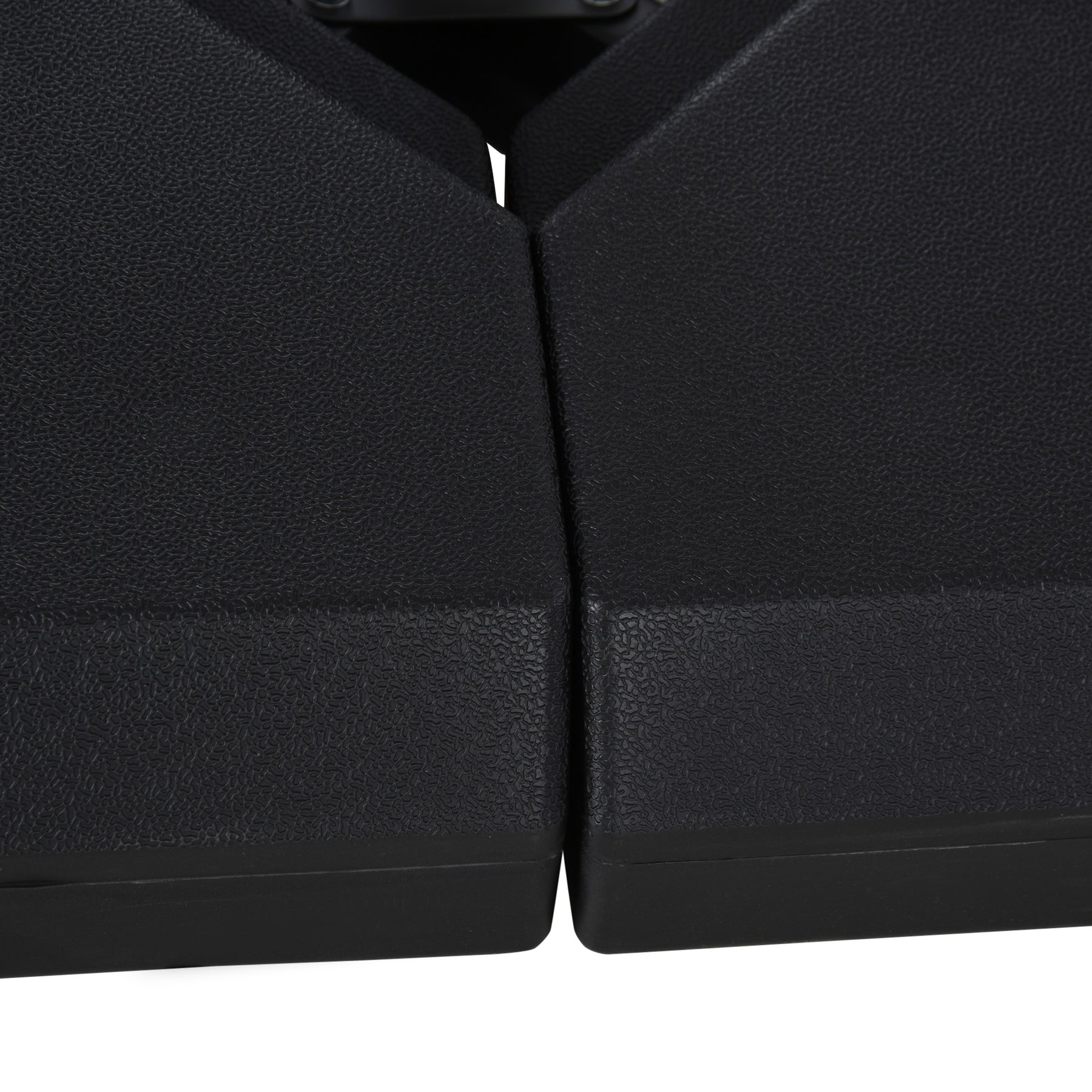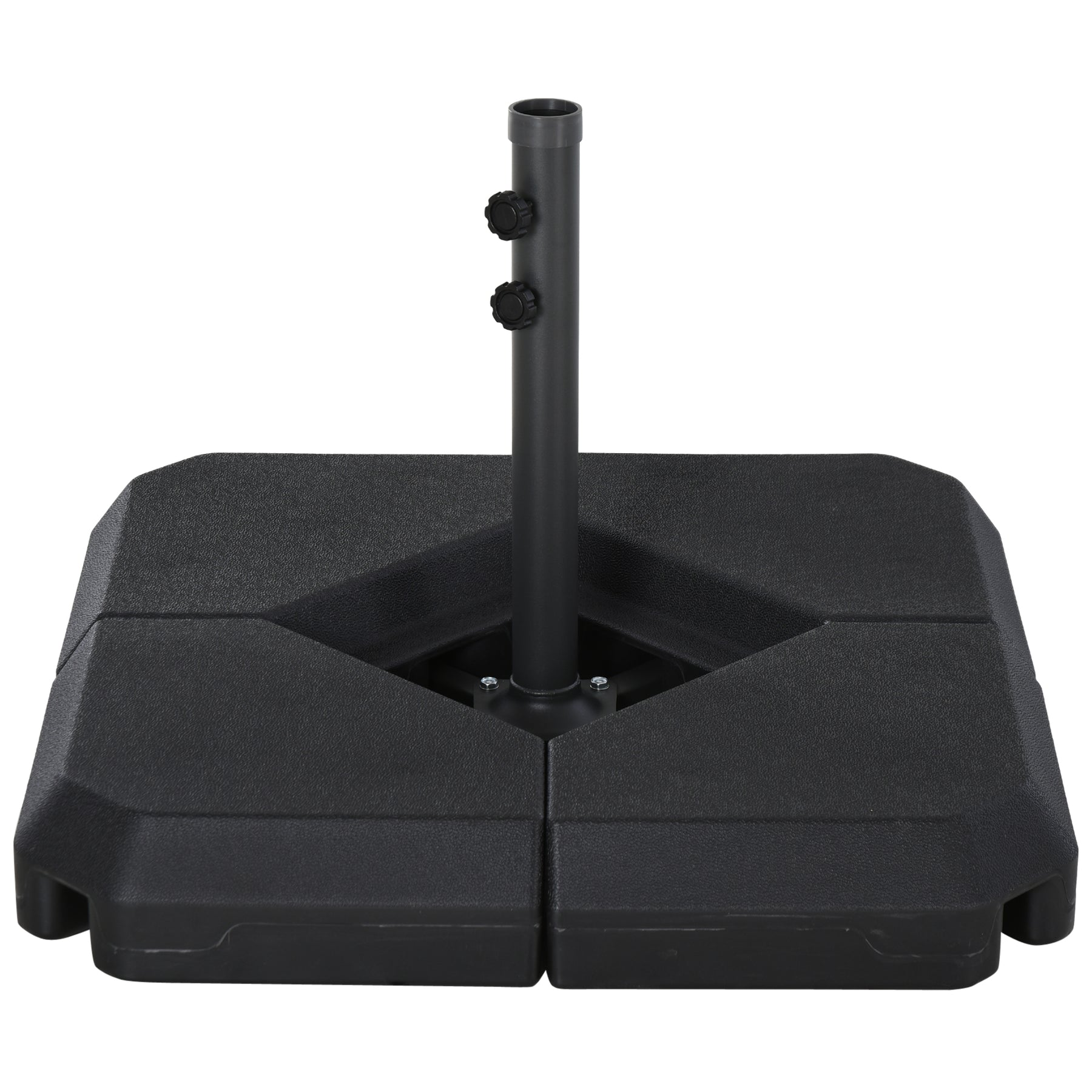Keep your parasol held firmly in place with this four-piece weighted base from . Made from strong HDPE plastic, it is comprised of four pieces which fit together on the supplied steel cross base, fitting parasol poles with a 48mm diameter. Each parts holds 15 litres of water or 18kg of sand, and is filled with the side sprout. Easy to carry when empty. Whether it's for the home or a commercial premises, this is the parasol base for you.