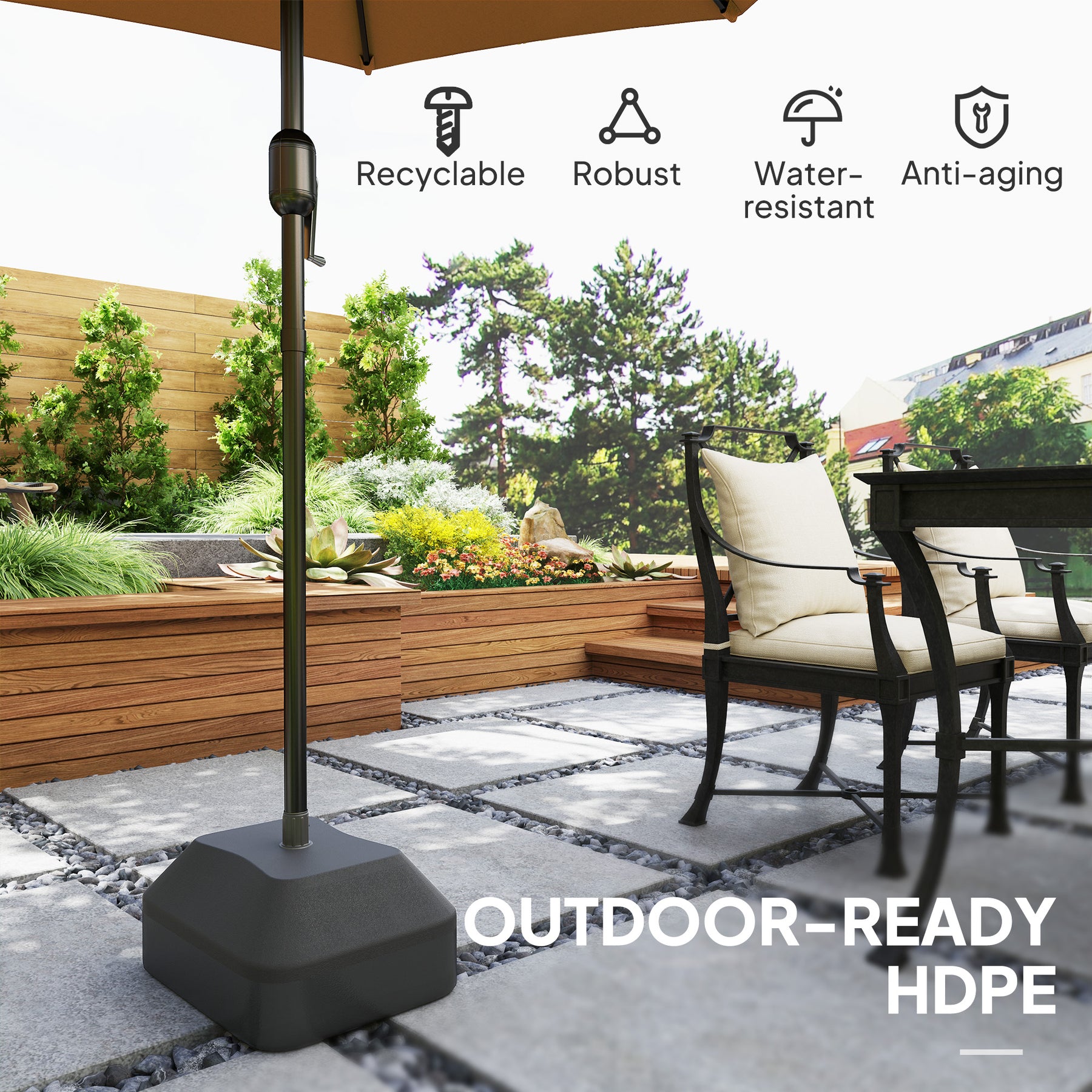 Ensure your parasol is always held firmly in place with the parasol base. Made from strong anti-ageing HDPE plastic, it needs to be filled with sand or water to increase the total weight, keeping stability outdoors. Easy to set up with the centre pole. Combine our weighted umbrella base with an umbrella and create your own oasis under the shade.