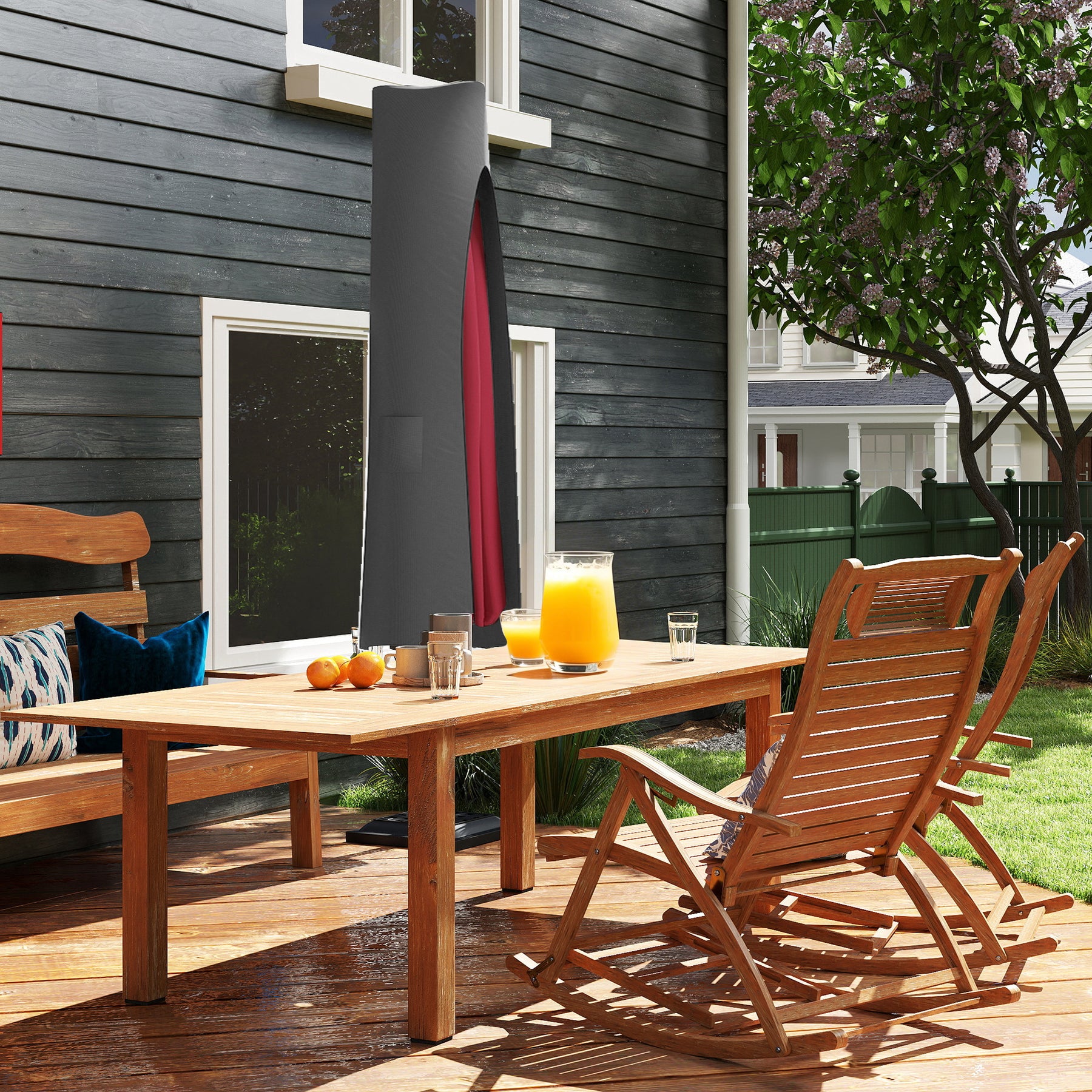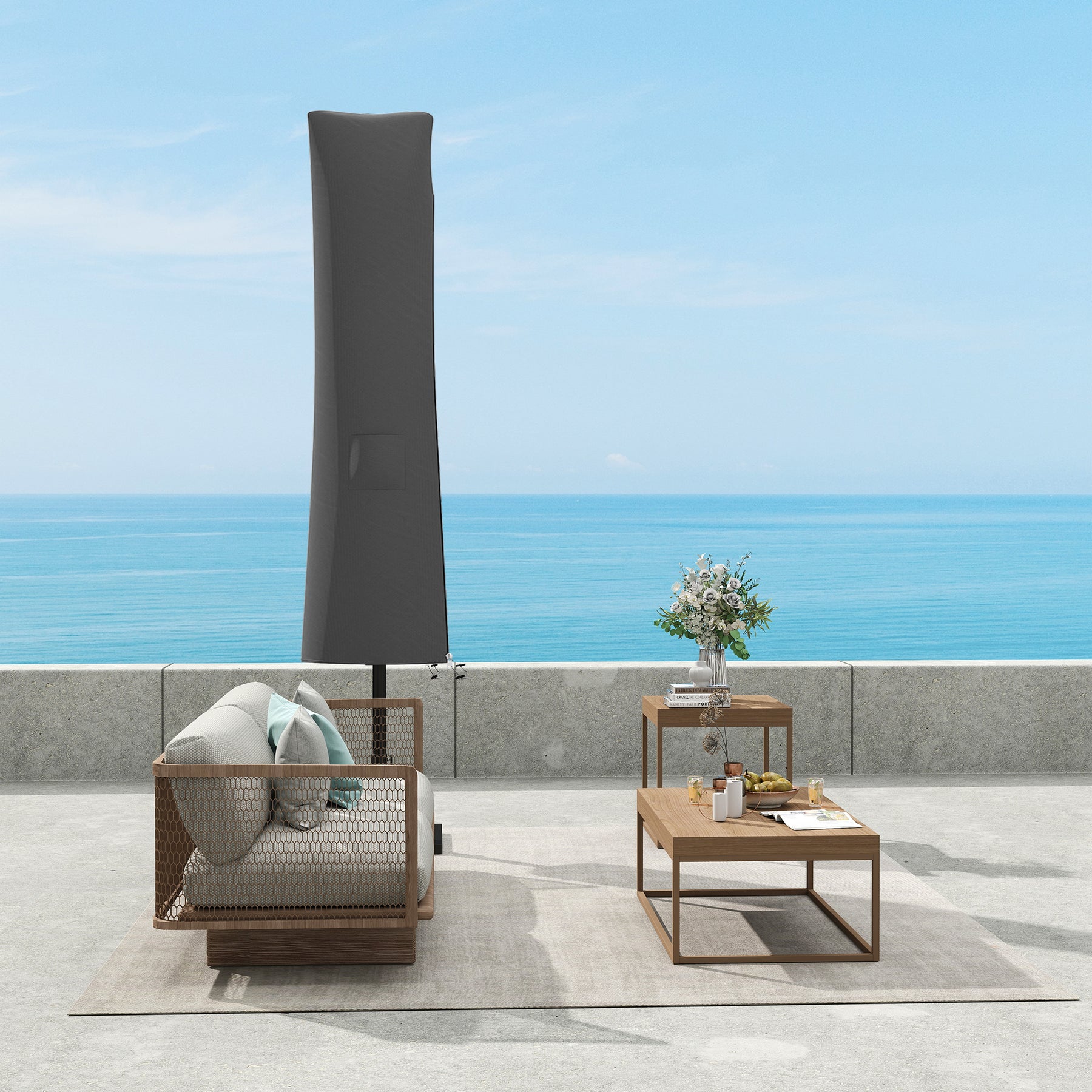 Protect your garden umbrella when needed: choose this large parasol cover. Made from 300D Oxford cloth with a plastic coating, it is tough and will not crack, fade or tear; it's also resistant to mould and mildew build-up. Double stitched edges for extra protection and support, with cord locks on the bottom to keep it secure in strong winds. The fibreglass structure makes it keep in shape. An all-round winner.