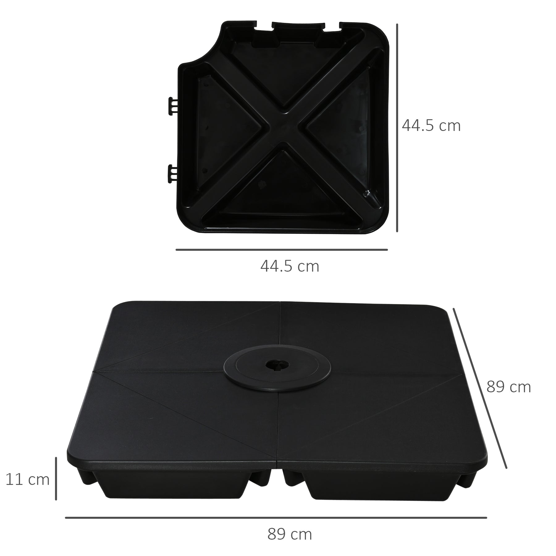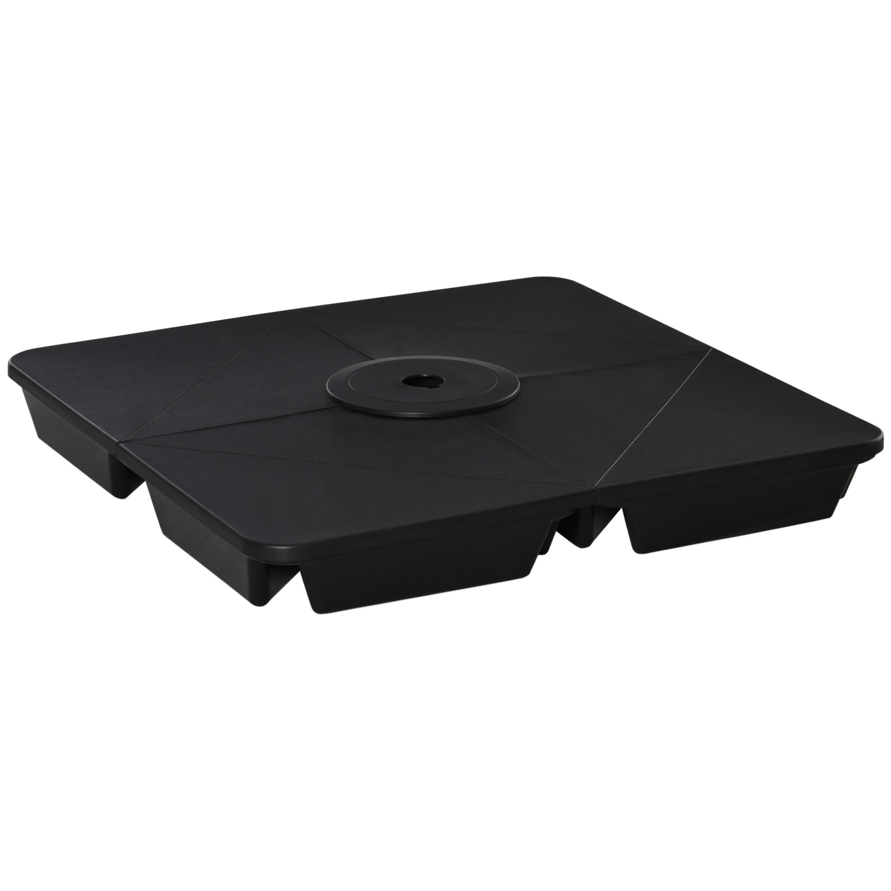 Ensure your cantilever parasol always stands firmly in place - keep it supported with this base. Made from tough plastic for durability and outdoor suitability, it's formed of four pieces which fit perfectly onto your cross base. The fillable design creates extra weight to keep the umbrella standing in place - also makes it easy to carry when empty. Click design to fit onto the cross base in just a few movements. Suitable for our Cantilever banana paraols - cross base not included.