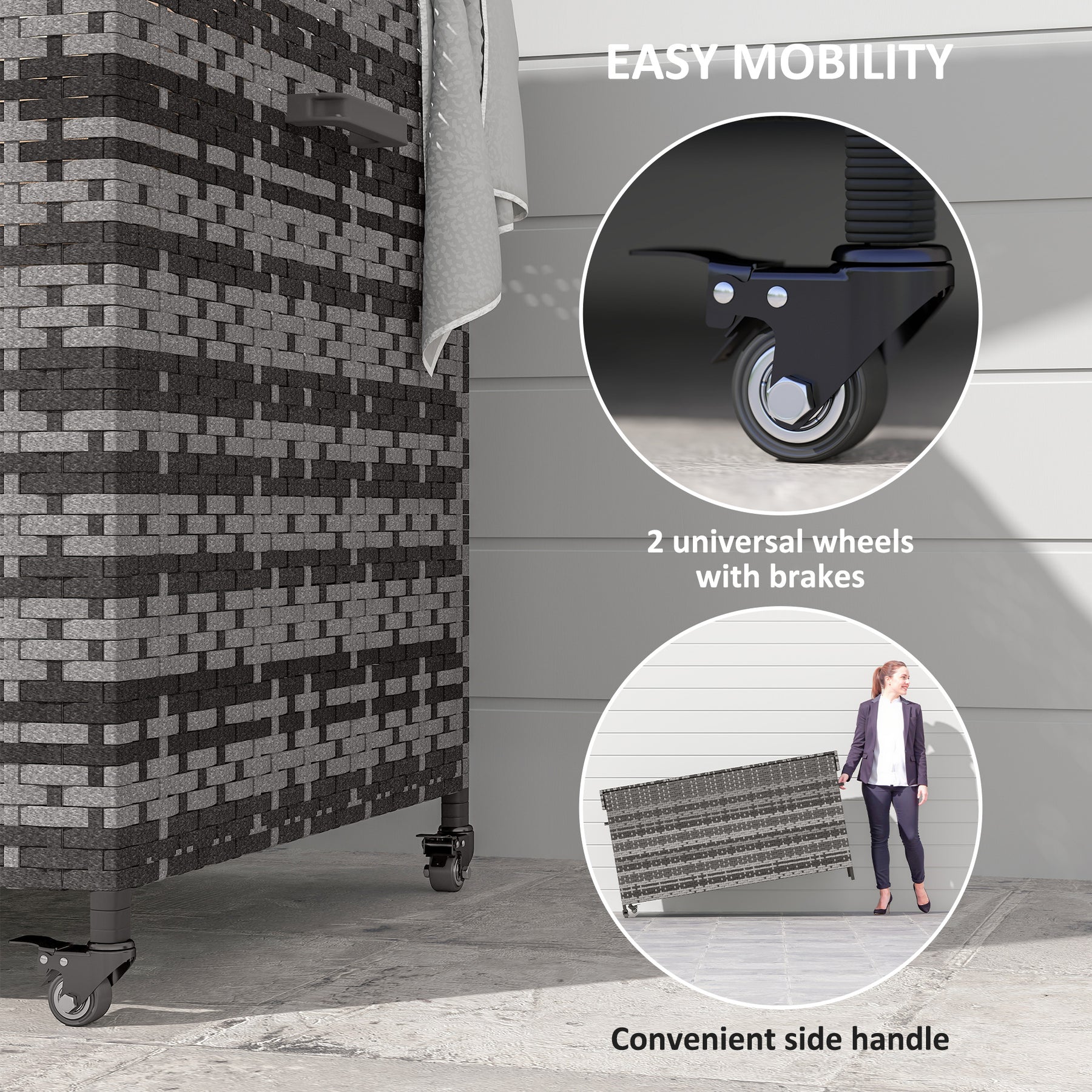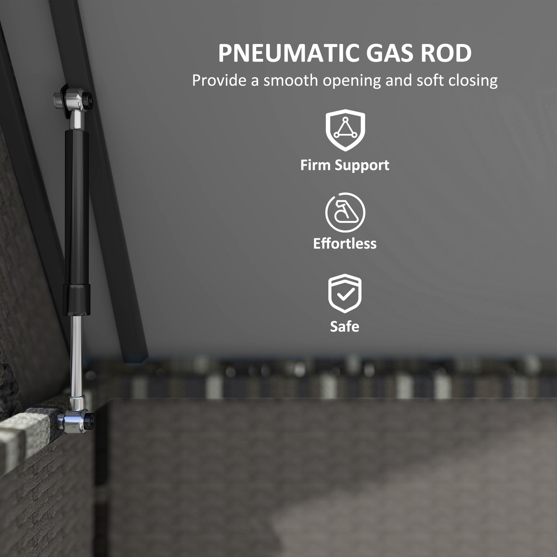 This 627 L garden storage box is a safe, protective place for garden tools, supplies and other accessories. Fitted with a gas strut lift mechanism to ensure the lid opens and closes safely and steadily. A powder coated steel frame means a strong core, wrapped in stylish and tough plastic rattan. Complete with a handle and two wheels to move around, even when heavy.
