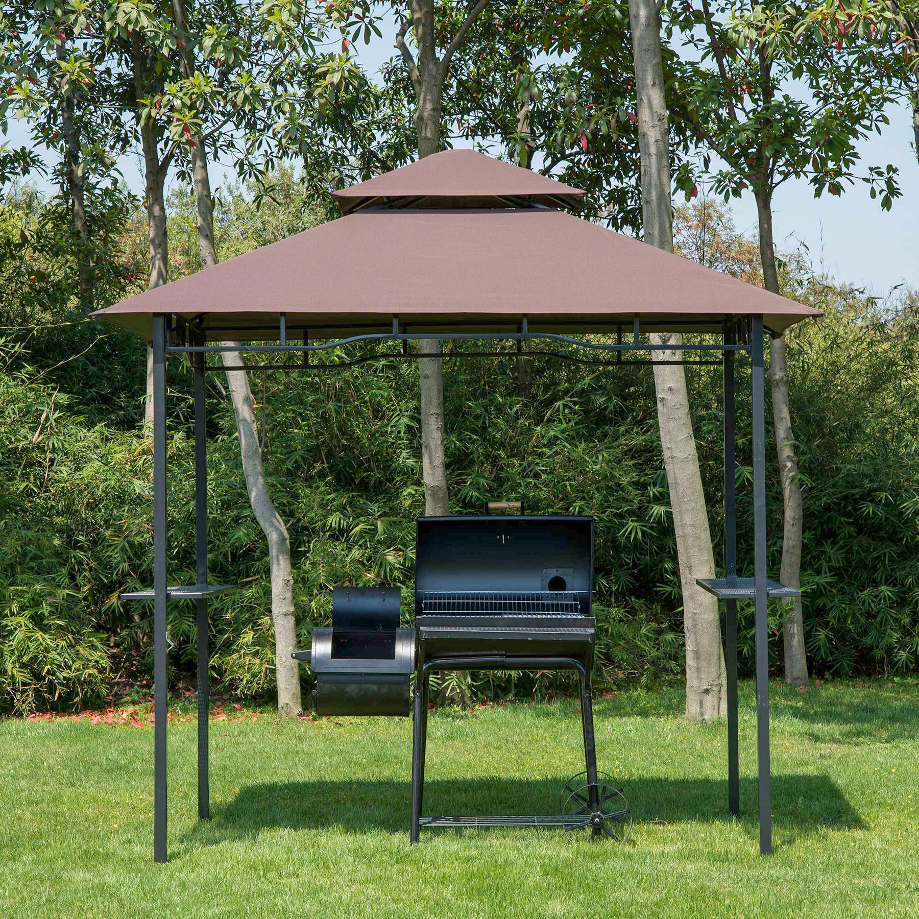 2.5x1.5m (8'x5') Grill Gazebo Canopy, Double Tiered Outdoor BBQ Gazebo Shelter with 2 Side Shelves for Garden, Patio, Barbecue, Picnic, Coffee
