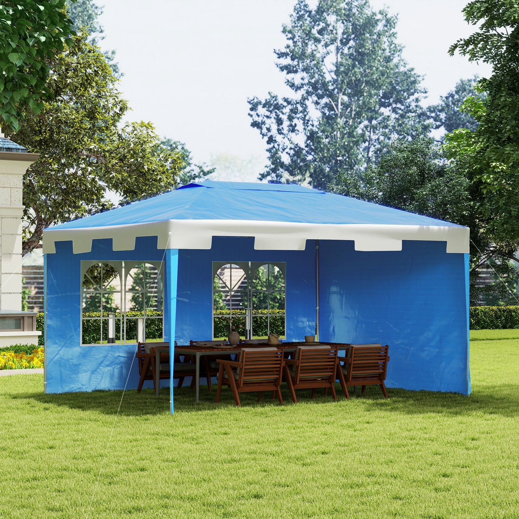 A marquee gazebo with sides to put up for any event - car boot sales, garden parties, family gatherings and so much more. A steel frame for strength, our marquee is made into a 3m x 4m size, for plenty of space inside. Two removable walls of the party gazebo allow you to open up fully whenever you want; whether private or open, the choice is yours. A wall features two clear windows to see outside.