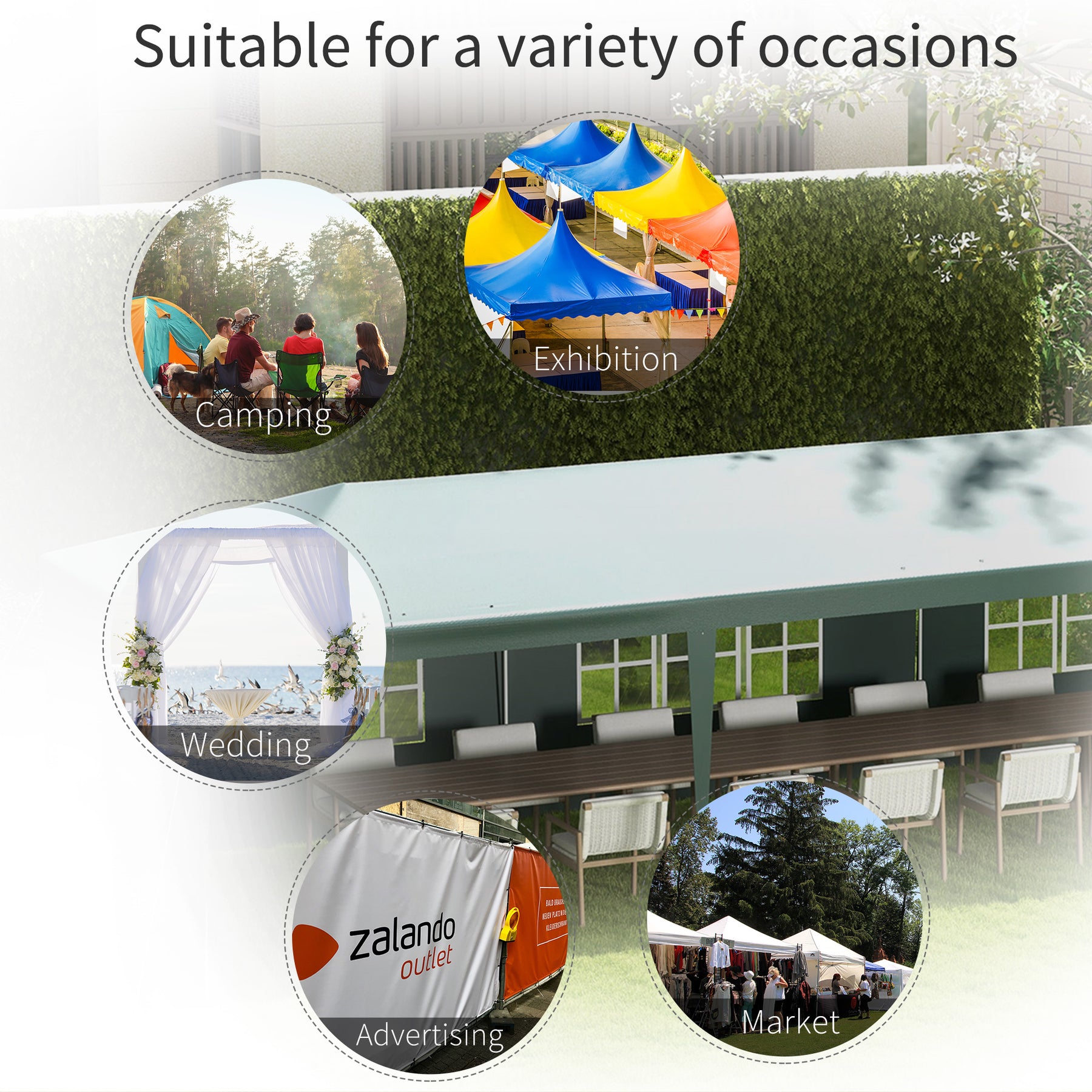 This 3 x 9m size party gazebo is a great place to create a private party atmosphere. A powder coated steel frame means a strong core, fitted with a top canopy for shelter below. All the walls can be removed, so you can create and open or closed atmosphere. Eight guy ropes and 16x ground nails included to pin structure to the ground for extra stability. Whatever the event, this marquee gazebo with sides has got you covered.