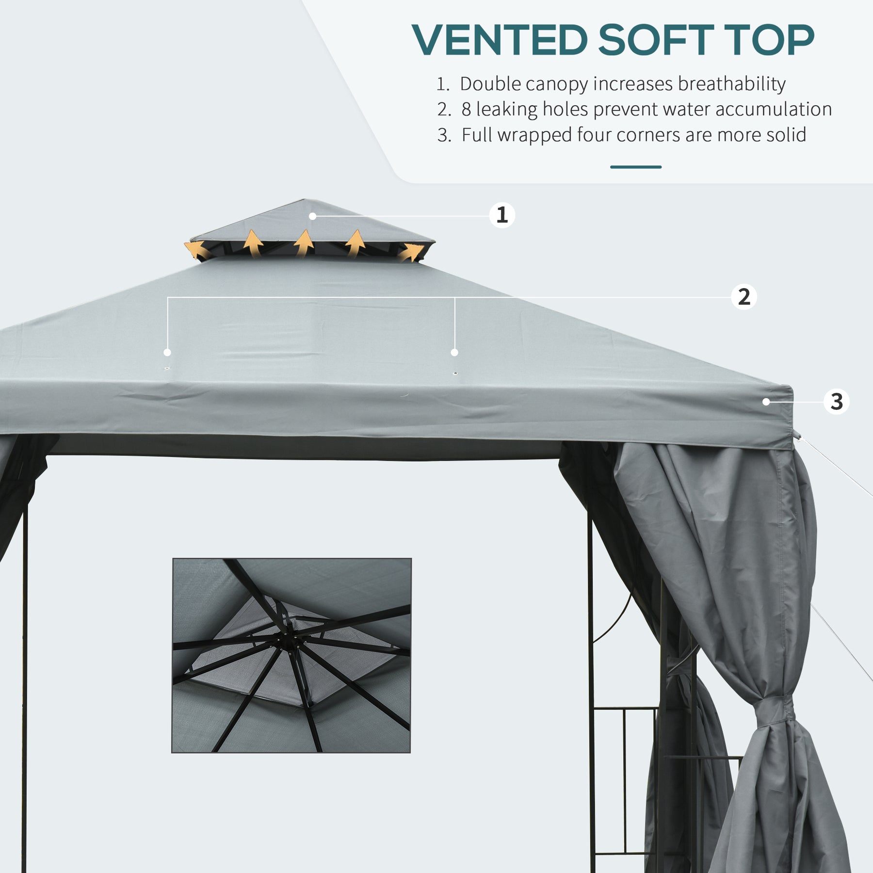 MCL 3 x 3 m Garden Gazebo Double Roof Marquee Patio Wedding Party Tent Canopy Shelter with Sidewalls, (Dark Grey)