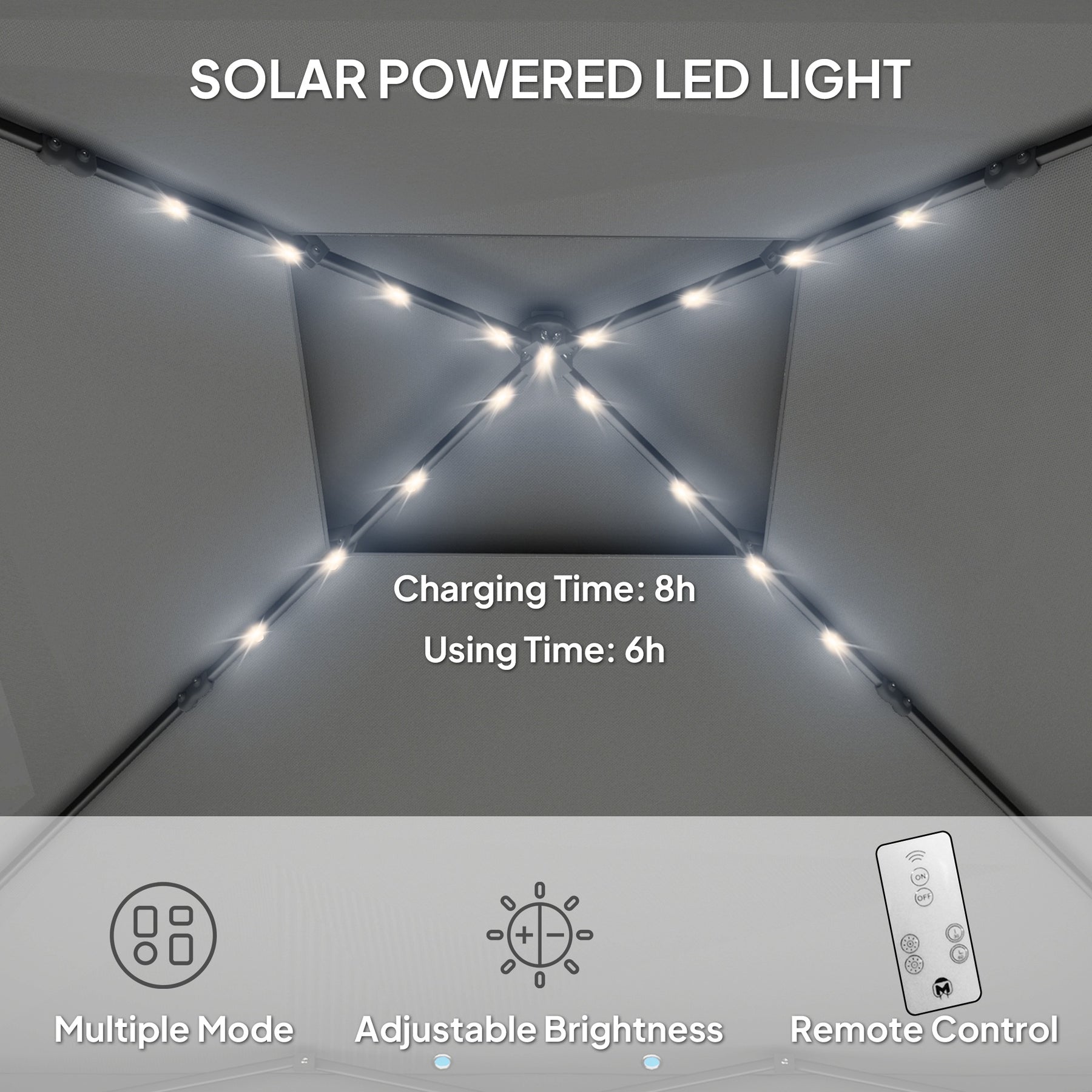 3 x 3(m) Pop Up Gazebo Party Tent with Solar-Powered LED Lights, Adjustable Event Shelter with Netting, Black
