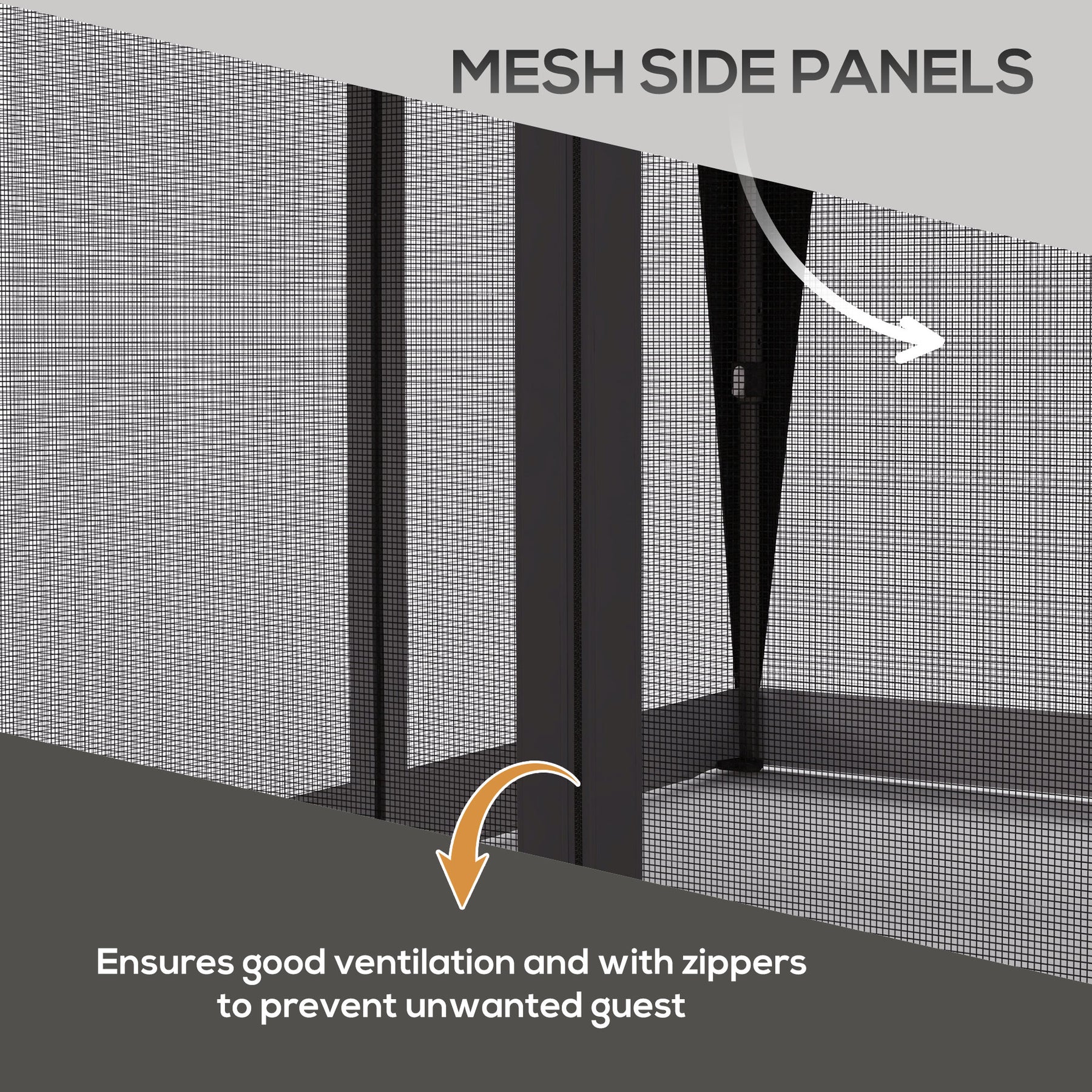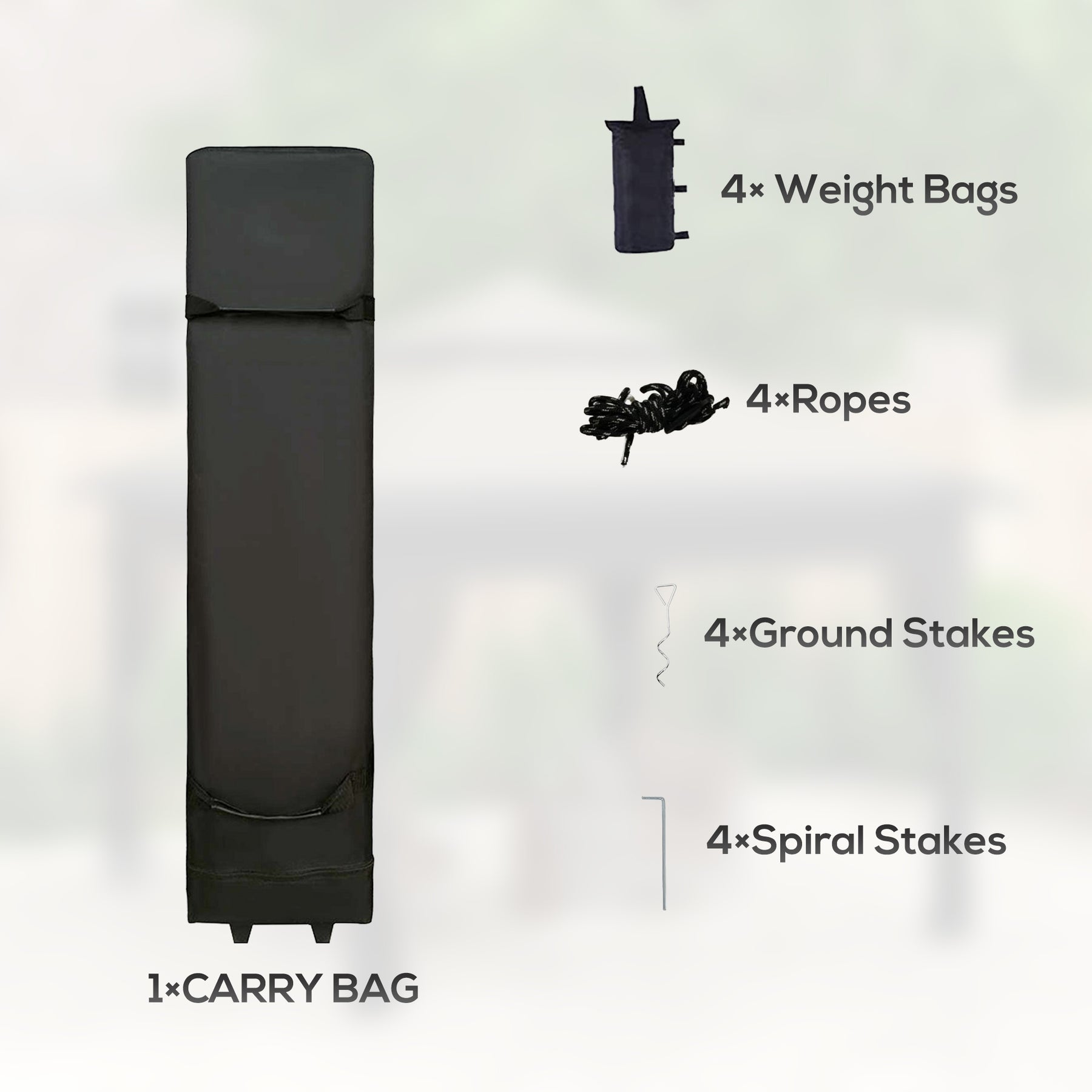 A garden tent for your outdoor gatherings, assembled oh so quickly - bring this 3 x 3(m) pop-up gazebo to your outdoors this season and beyond. The freely adjustable steel frame means a strong core, which can be set to a height most suitable for you. Stakes, ropes and sandbags stabilise your garden shelter on soft ground. It provides shade for 5-8 people.