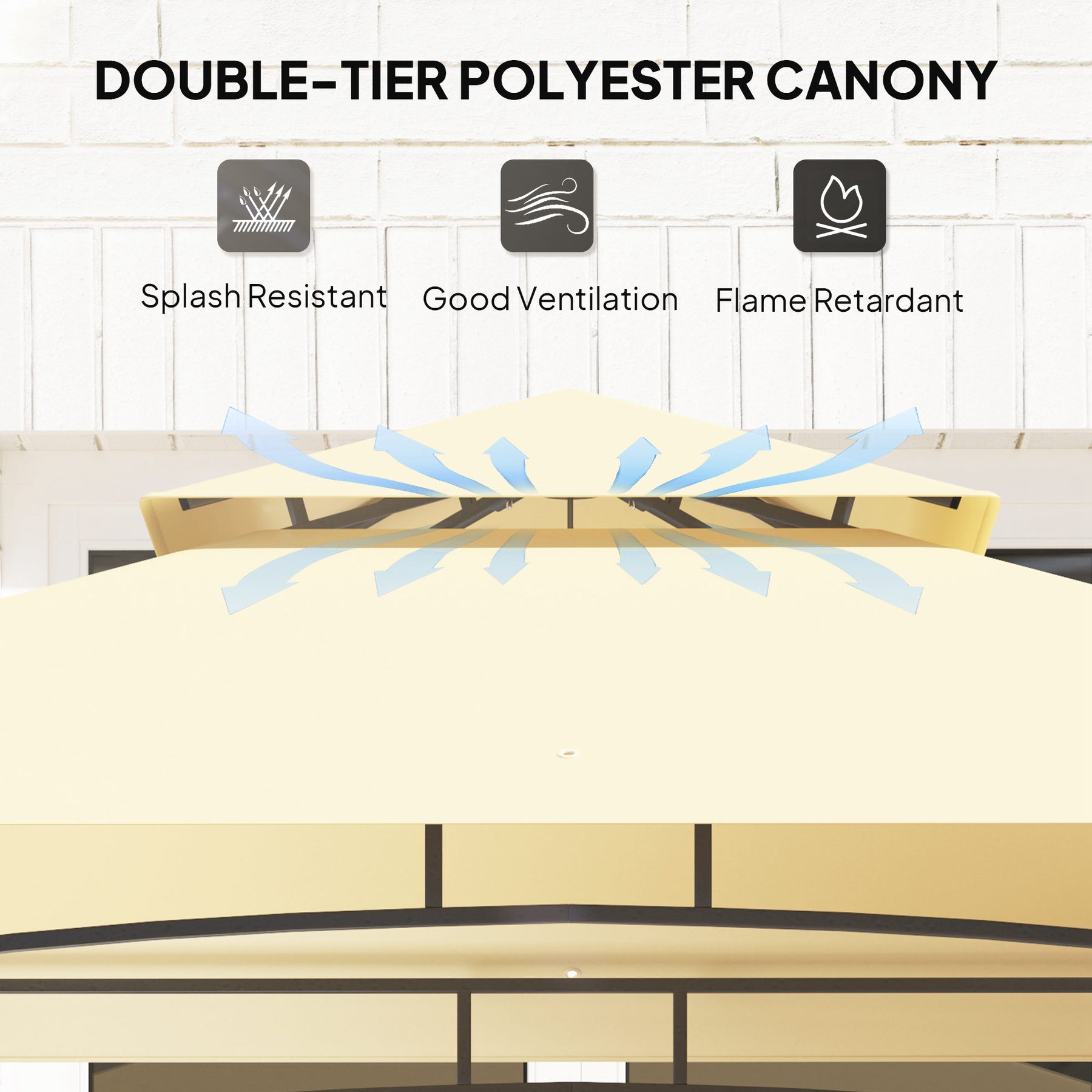 8' x 5' Grill Gazebo, Double Tiered BBQ Gazebo Shelter Canopy with LED Lights, 2 Side Shelves, Hooks, Beige