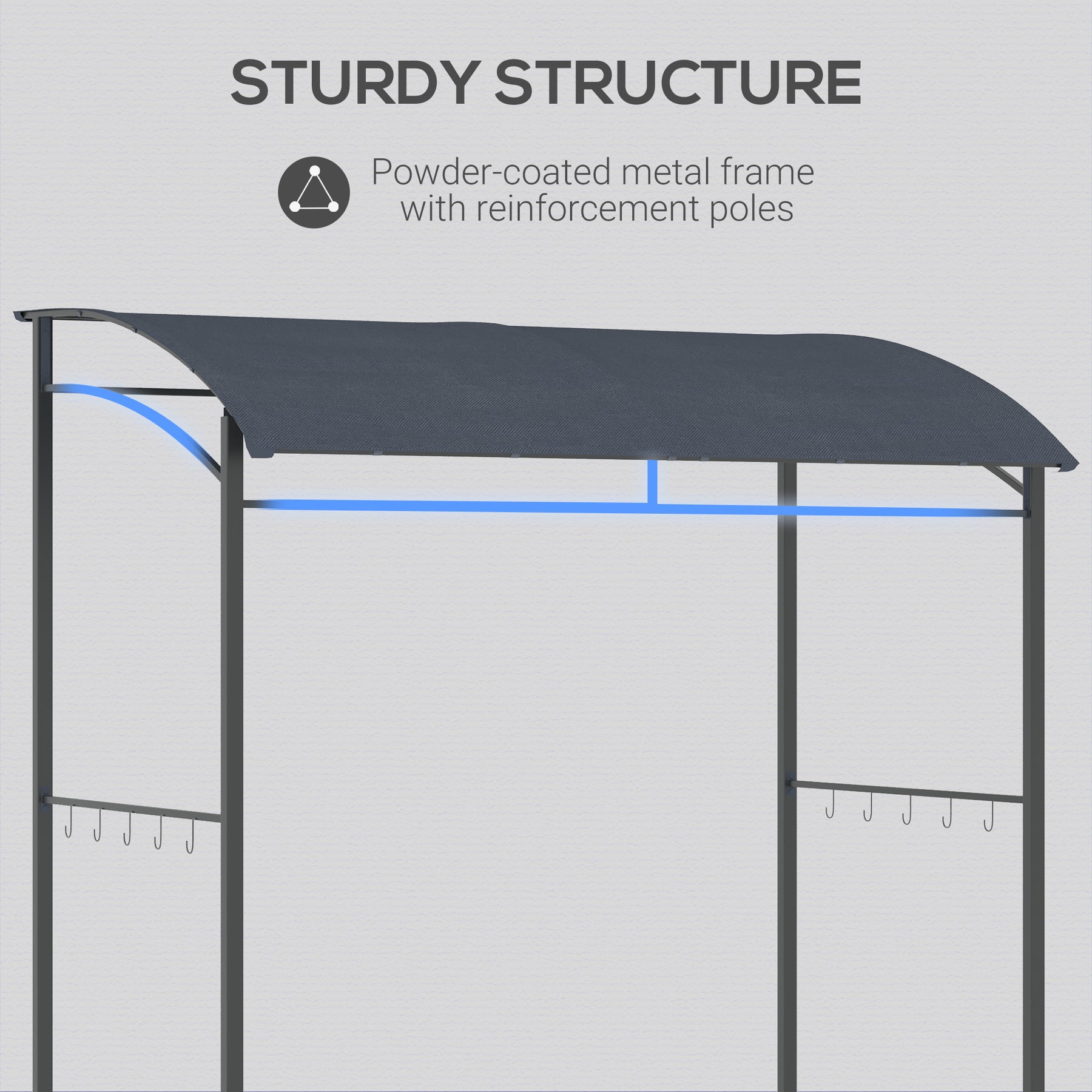 MCL 2.2 x 1.5 m BBQ Grill Gazebo Tent, Garden Grill with Metal Frame, Curved Canopy and 10 Hooks, Outdoor Sun Shade, Grey