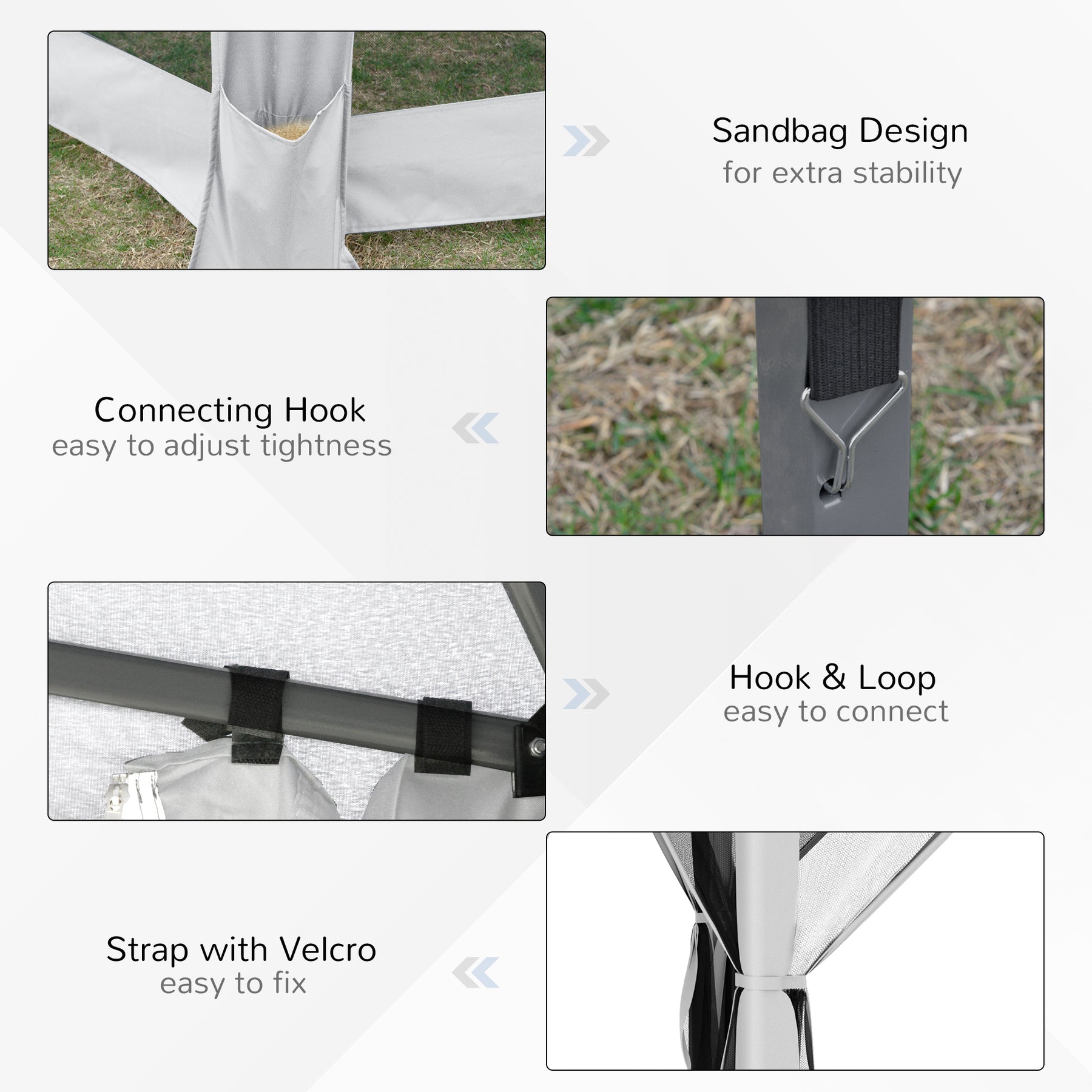 Our MCL pop up gazebo with side is great for outdoor parties, gatherings, camping trips. Made from breathable polyester fabric to protect you from direct sunlight. Garden gazebo's large sizing provides enough shelter for yourself and several other people, with an all-steel frame for reliability. Removable mesh sidewalls for protection from mosquitoes. Comes with guy ropes and ground stakes to set it into place comfortably, it can all be folded and stored in a bag.