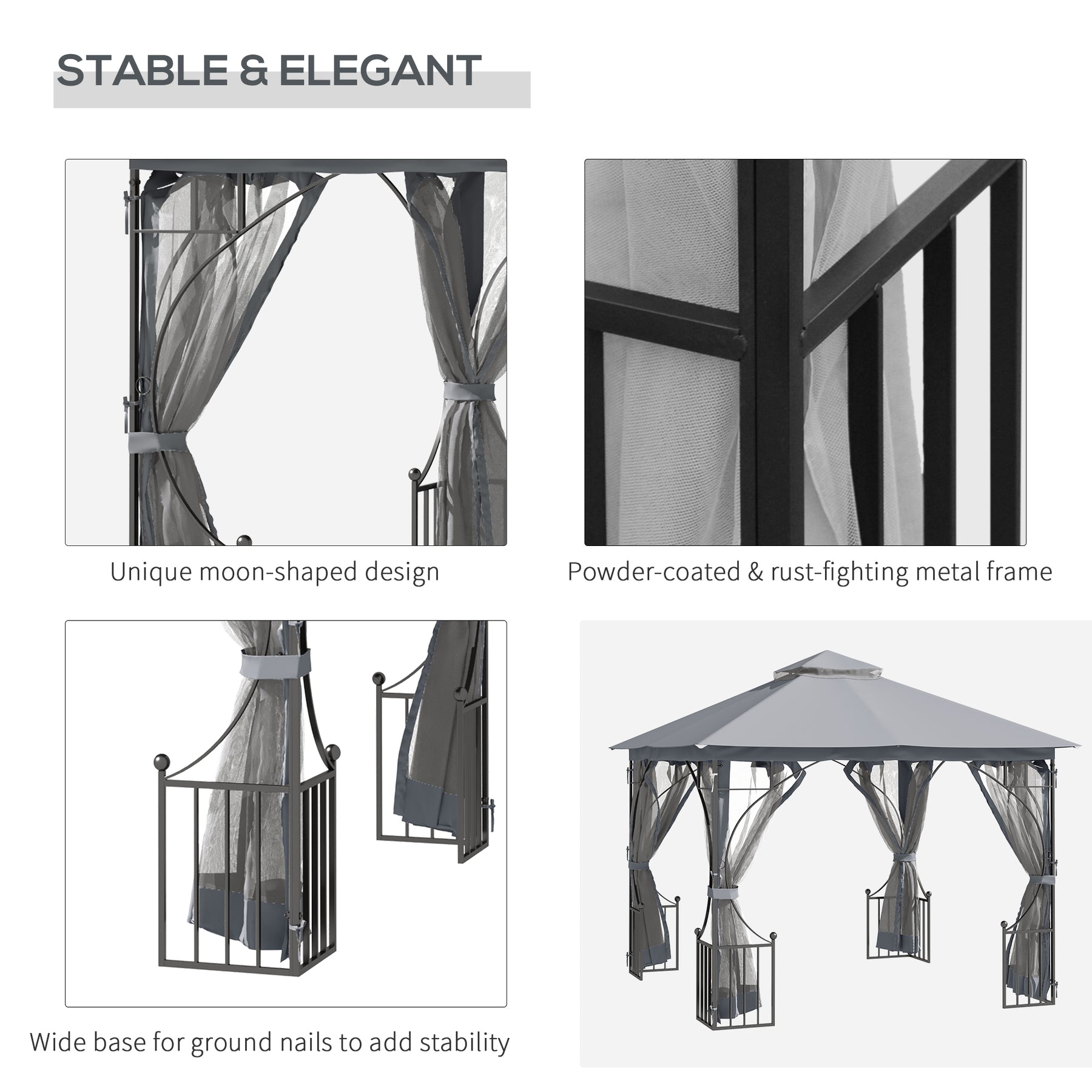 MCL 3 x 3(m) Garden Gazebo Patio Party Tent Shelter Outdoor Canopy Double Tier Sun Shade Metal Frame Netting, Light Grey