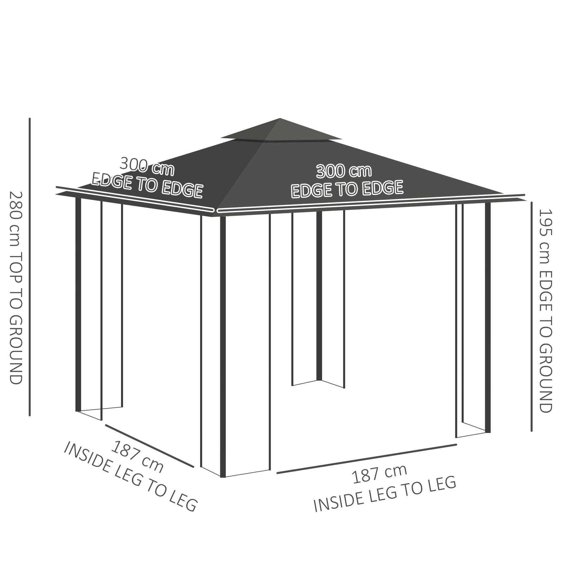 This MCL 3 x 3(m) gazebo is great for plenty of outdoor activities. The powder coated steel frame means a strong core, with mesh curtains to create a private or open feel; it's up to you. Netting helps keep insects away. 8x ground stakes included to pin to ground.