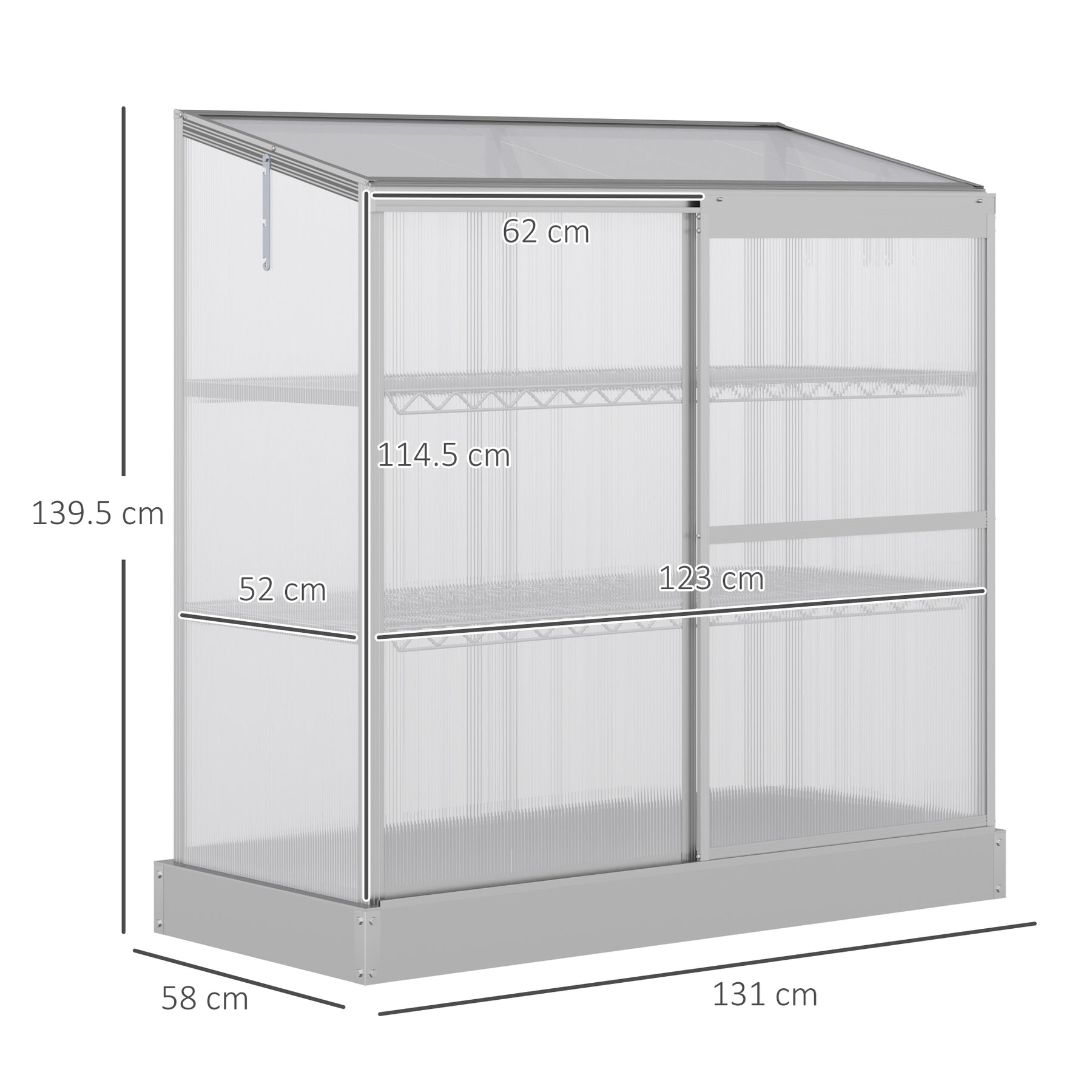 MCL 3 Tier Greenhouse Garden Outdoor Cold Frame Plant Flower Growth Transparent Polycarbonate Board Openable Roof Sliding Door w/ Foundation 131L x 58W x 140H cm