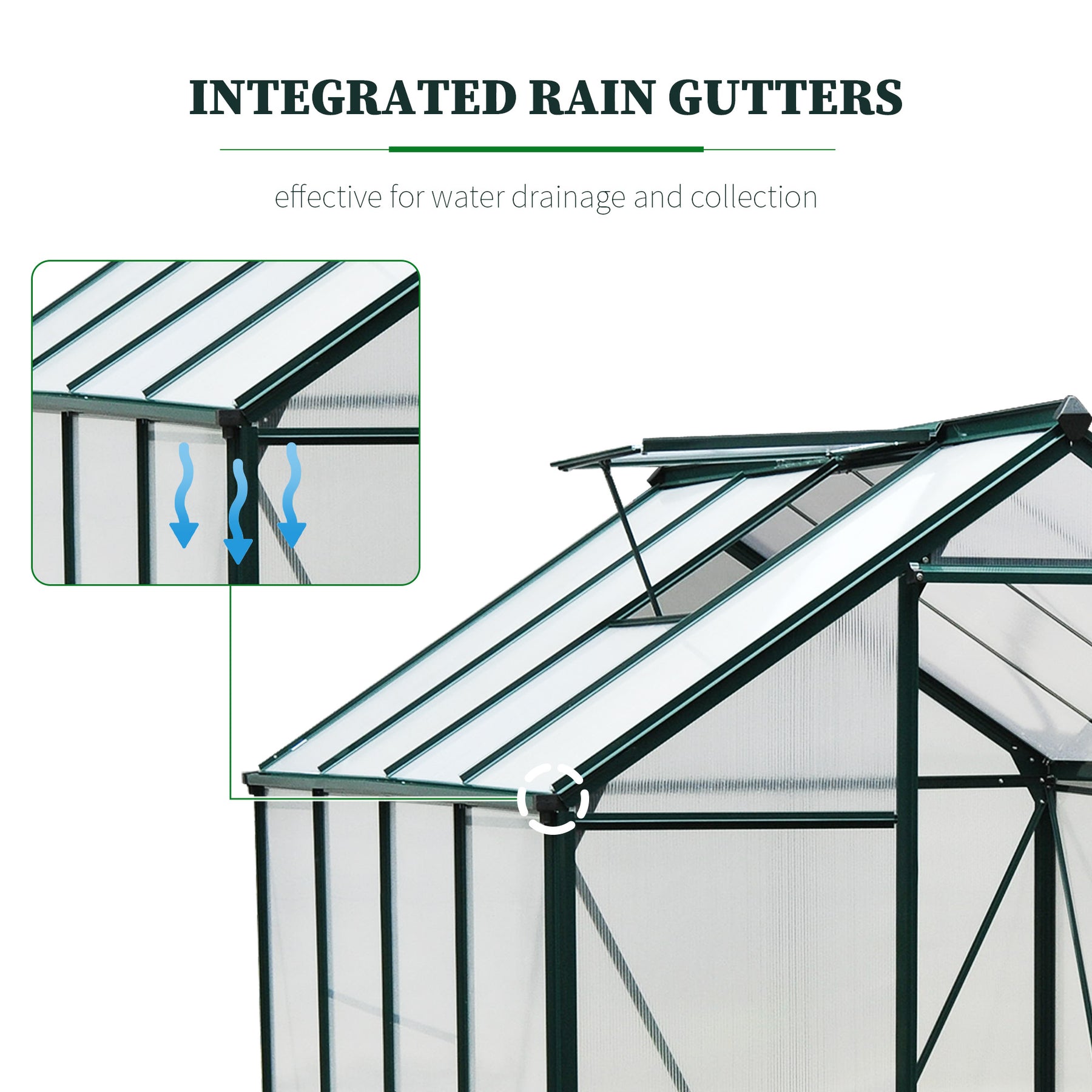 MCL 6 x 8ft Polycarbonate Greenhouse, Large Walk-In Green House with Slide Door and Window, Garden Plants Grow House with Aluminium Frame and Foundation, Dark Green