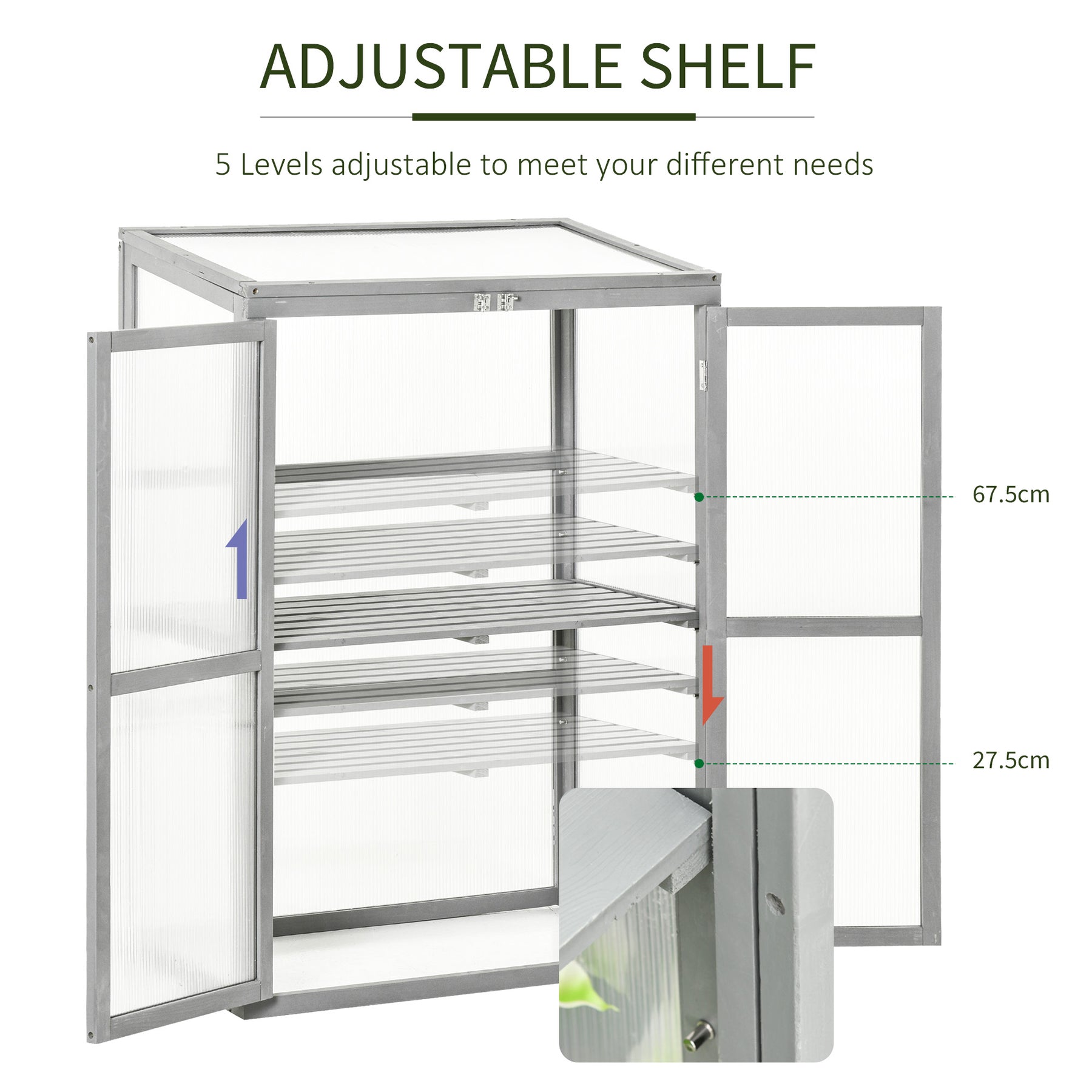 MCL Wooden Cold Frame Greenhouse Polycarbonate Garden Grow House for Flower Vegetable Plants with Adjustable Shelf, Double Doors, 76 x 47 x 110cm, Light Grey