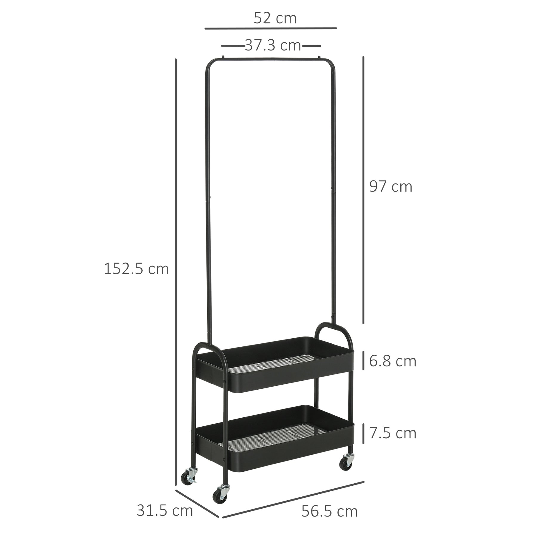 MCL Metal Clothes Rack with Shoe Storage, Clothing Rail on Wheels, Freestanding Hall Tree, Coat Stand with 2 Storage Shelf, Black
